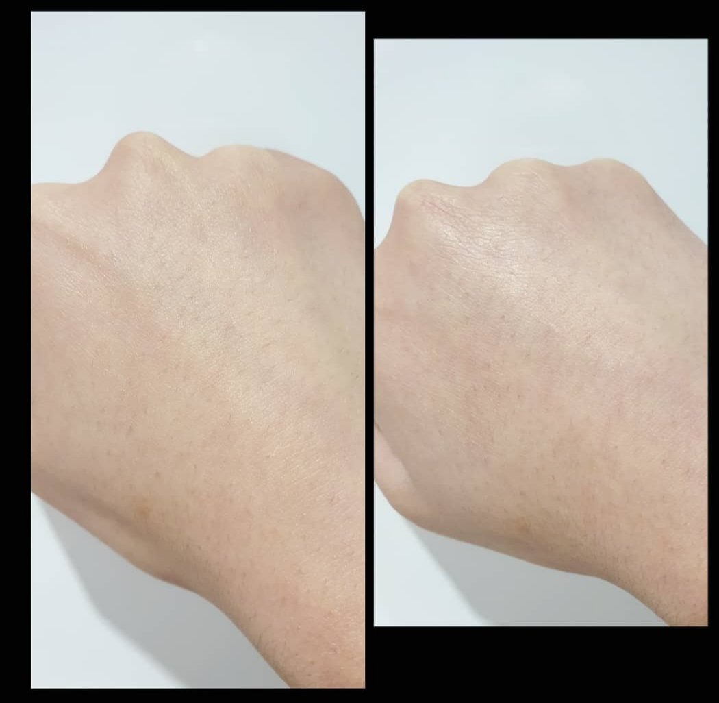 Texture: As you can see from the comparison shots – this sun screen is very thin it has a slight shine that wasn’t picked up too well on camera. But there is zero white cast too.