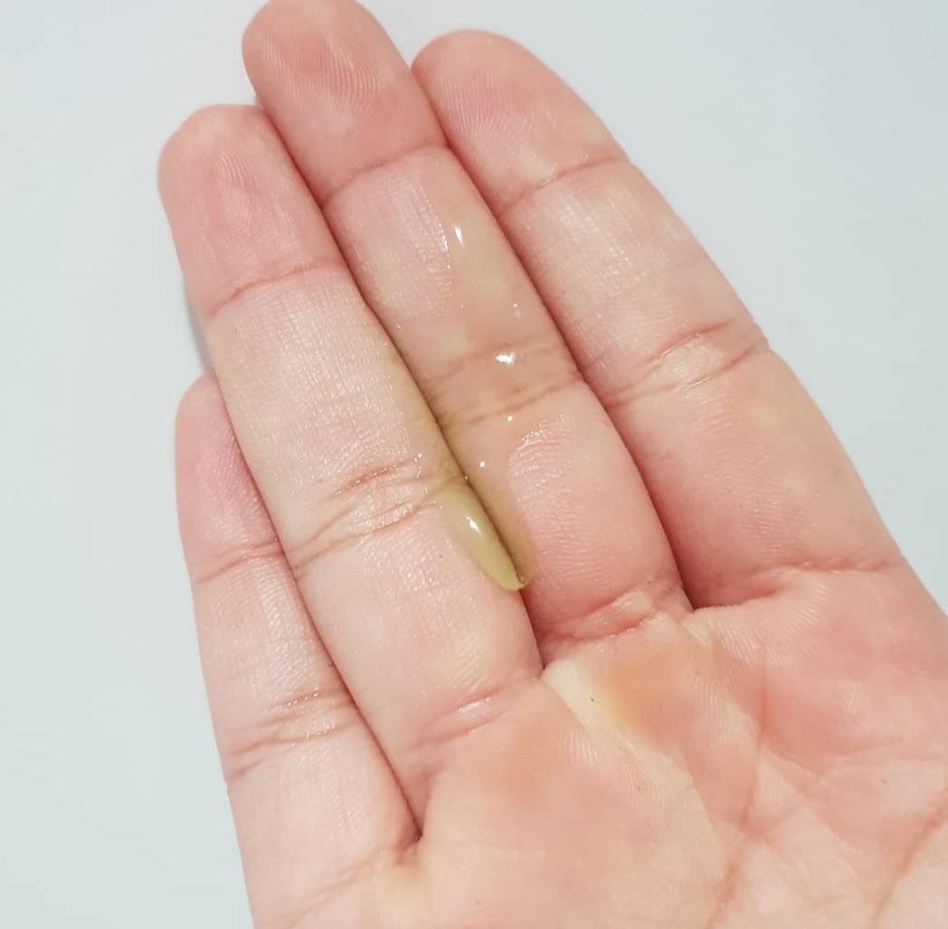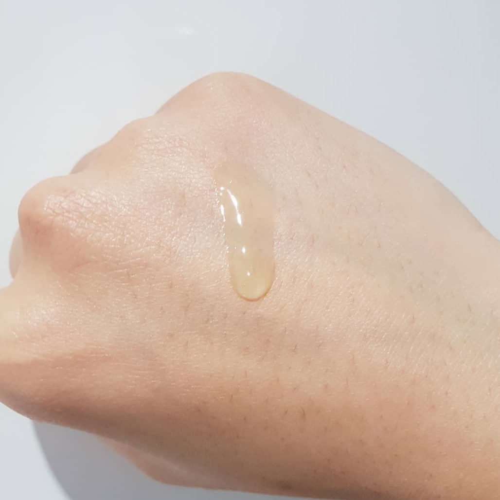 Texture: Not sticky! A very luxurious serum feeling that rubs into the skin smoothly and absorbs smoothly too! It feels like water and does not stick or feel gooey.