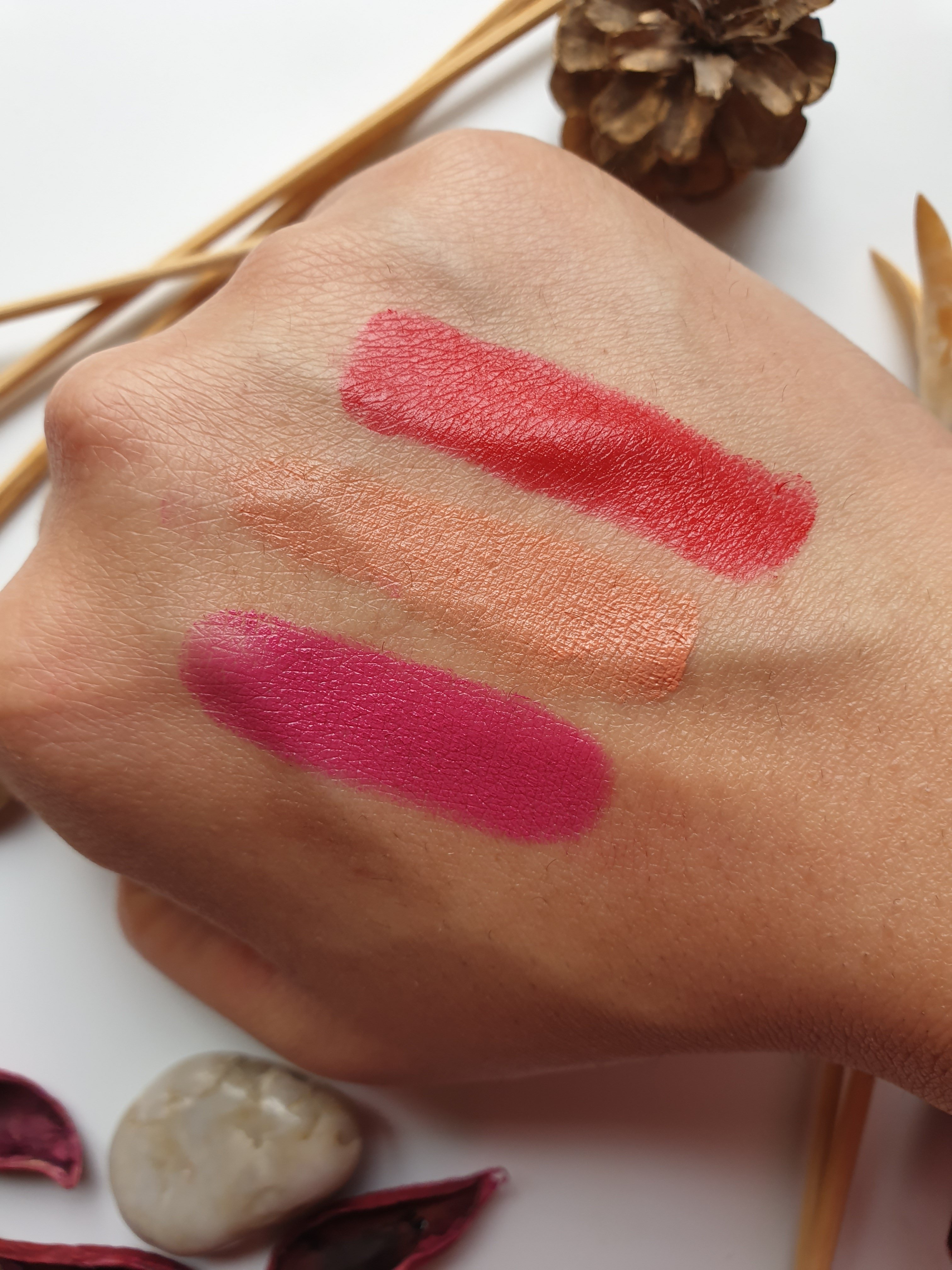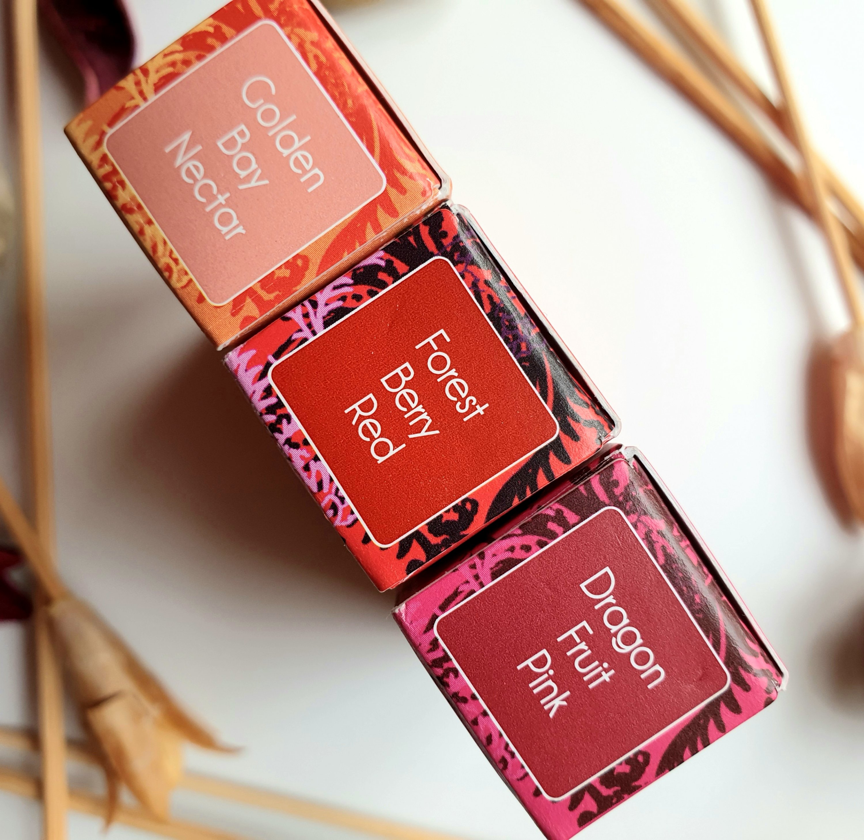 The shades I received were: Golden Bay Nectar / Forest Berry Red / Dragon Fruit Pink