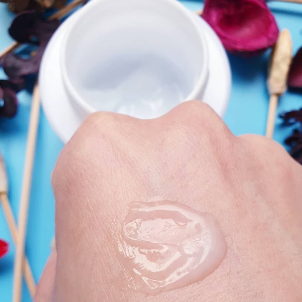 Texture: This is a gel cream, It takes a while for this too fully absorb into the skin, so less is more. I tried to use this as a sleeping mask once (so just adding a thick layer) and this remained sticky and didn’t seem to really sink in. So i’d say this cream is better if you don’t have products underneath / use very few products underneath or add a very thin amount.