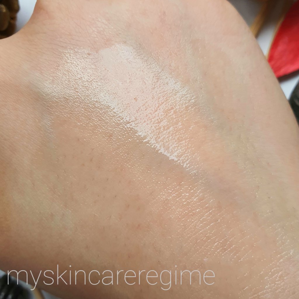 Texture: This is NOT sticky or gloopy when applying, it can be a bit sticky once this has dried down (i.e. like forming a layer on the skin). But it’s not uncomfortable on the arms. It’s still quite lightweight.