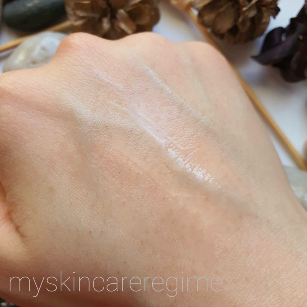 Texture: As you can see, it looks less like a serum and more like a gel. This doesn’t really run down my hand as it’s quite viscous.