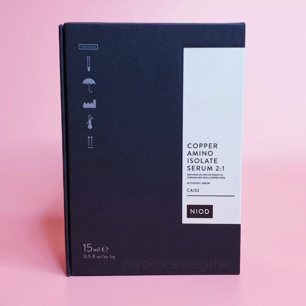 Good for: Line prevention (targets the signs of ageing by stimulating collagen production). As this contains Hyaluronic acid and peptides as humectants, this is also surprisingly good at hydrating the skin too (obviously this would require another serum or moisturiser on top but it’s a nice perk) – so dehydrated skins I don’t think would find this unpleasant. It’s extremely lightweight so oily skins could also find this beneficial. I think dry skins who want to use copper peptides would prefer the other Copper Amino Isolate Lipid product from Niod which is in a tube and contains more emollient ingredients HERE