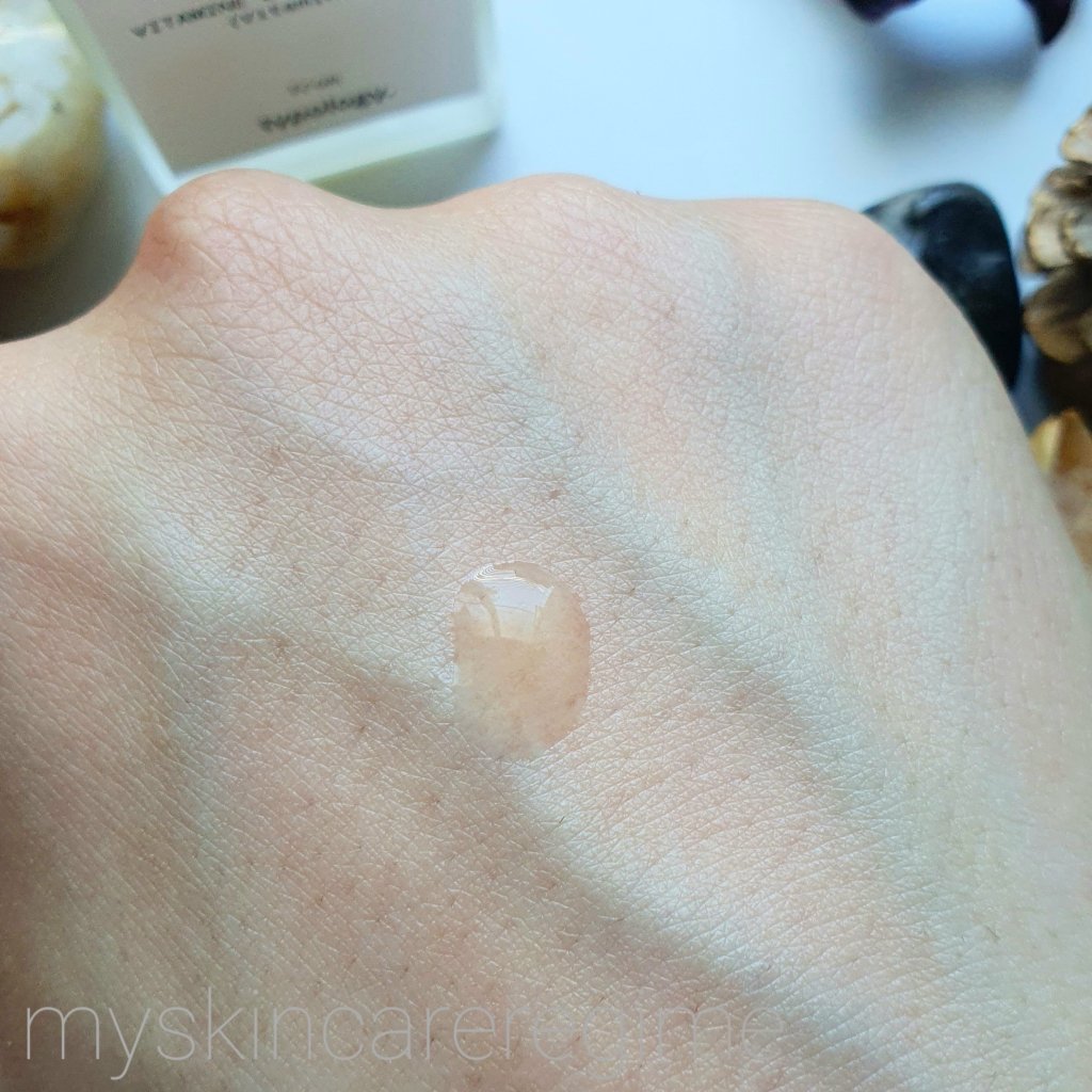 Texture: ‘Aqueous gel texture’ is how Typology describe it and I would agree! It spreads far along the skin as it’s a gel-like texture. It feels water-based and takes a few minutes to dry down fully. It does feel like this product forms a layer over the skin once it dries down (which should help prevent trans-epidermal water loss), and this does layer fine under and on top of products.