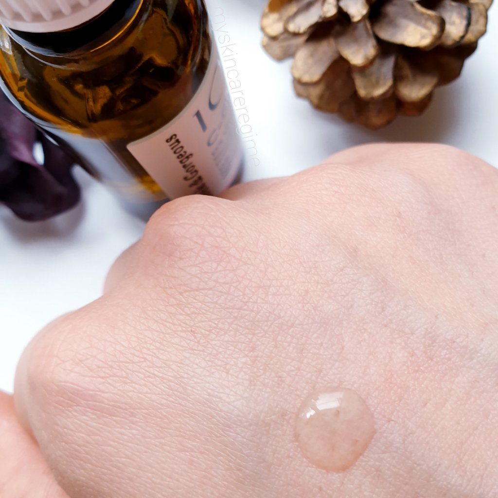 Texture: fast absorbing, water-like, weightless liquid. This feels exactly like the Timeless C E Ferulic Serum (Review HERE) it’s got that water-like texture, which I really appreciate in a serum because it spreads far and dries down quick. The only thing is it’s so light that it can be MESSY i.e it can run down my hand or drip before I get it on my face. So perhaps a texture where this was more like an emulsion may have helped ‘handle’ the product and get it on my face adequately.