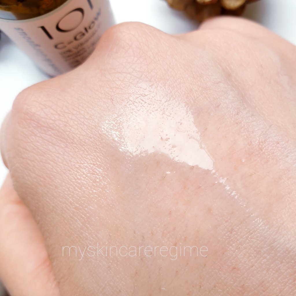 Directions: ”Apply a few drops to the face after cleansing, before using other serums and/or creams. Ideal to use in the AM but can be applied PM as well. As the C-Glow formula is water-like, we recommend that you put a drop directly onto your face and quickly pat it on with your other hand.” – from the G&G website. They even state that the product comes with a couple of months shelf-life (which is why I wish they would upgrade the packaging to try and extent this shelf-life.