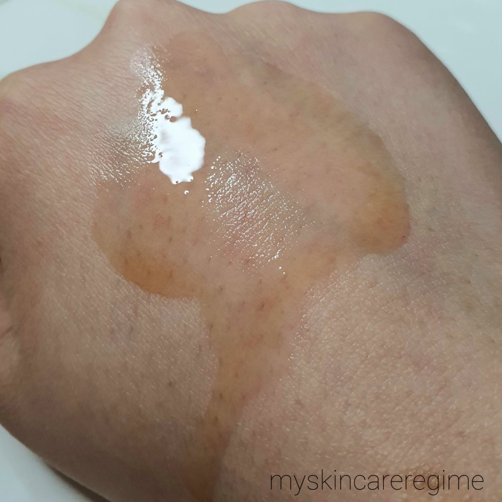 You can see it just runs down the hand! Very easy and quick to absorb. Just tap in or use a saturated cotton pad to swipe one’s face and you’re done!
