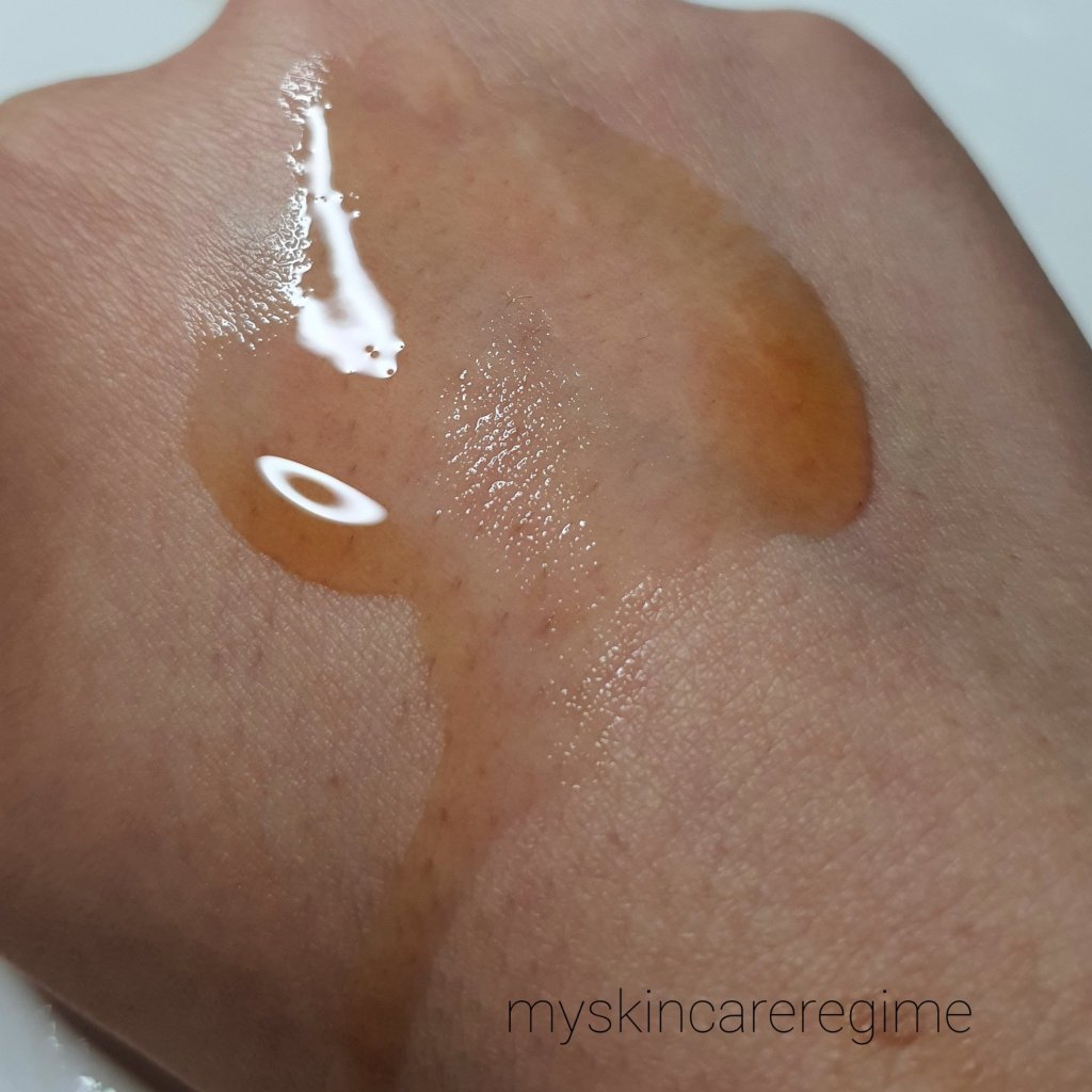 Texture: This is watery! It totally runs down my hand and does not hold its shape. It does have ‘bits’ (see the picture below) in it, but these are probably the extracts/fermented green tea and you don’t feel them as they’re so tiny. A lightweight texture that doesn’t really linger onto the skin and pretty much absorbs / disappears. Hence why I don’t think this would suit dry skins as it may feel like it dries out the skin even more. Oily skins would appreciate the light-weightiness of this. However, of course dry skins could use this and layer up with a moisturising serum/ cream as well But I do feel like also judging from the ingredients that this is aimed towards those with oily skins.