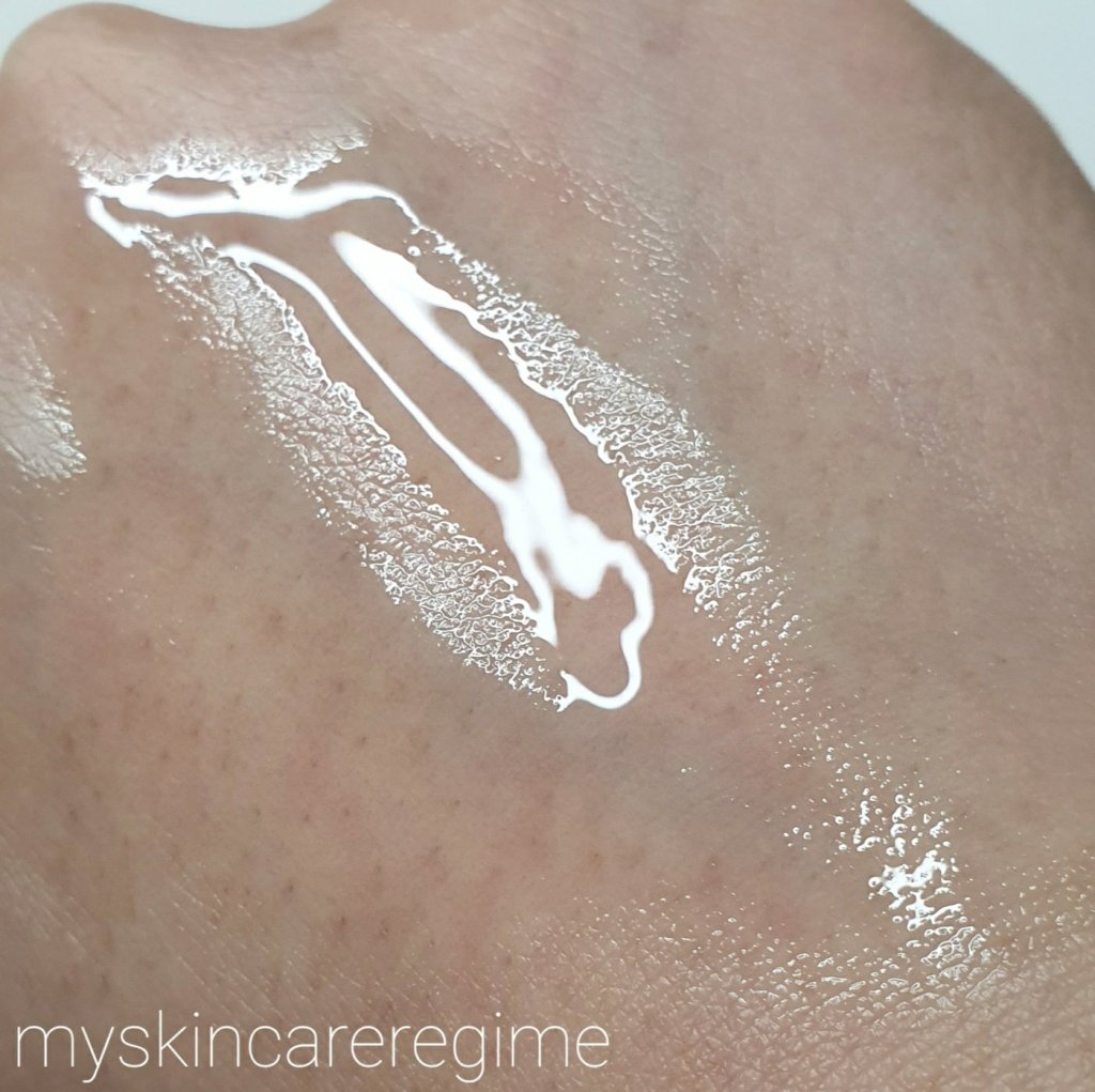 Do you see, it’s a watery-type texture that doesn’t sit on top of the skin, it will eventually sink in.