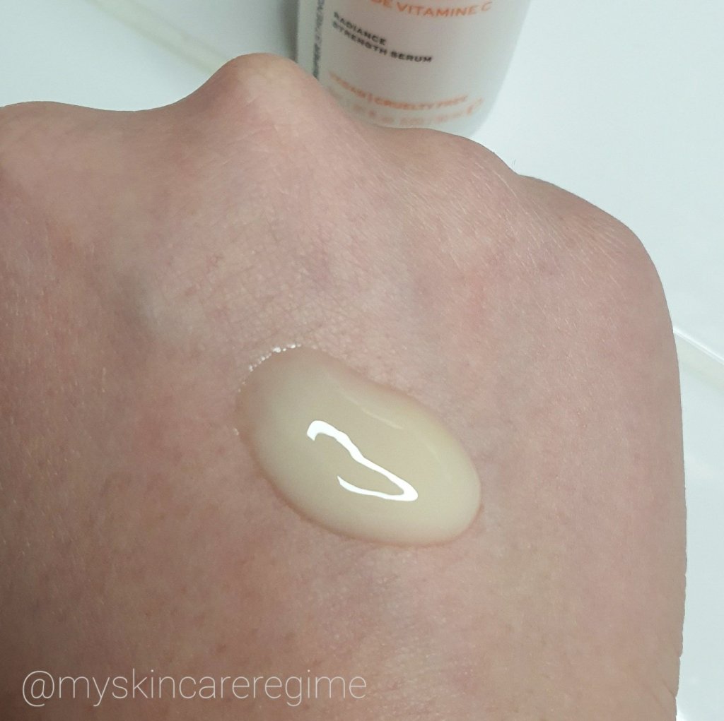 Thoughts: You can see it’s quite an emollient serum! It’s moisturising. I do think 20% is very high – but some people want a really potent serum. I think definitely this would suit dry skins over oily skins, as oily skins tend to go for more watery serums whereas as you can see, this is more fatty/emollient. Of course this smells like candied orange once again. I like the pump packaging as well. Didn’t seem to sting or irritate my hand – but I think this could be stingy on those with acneic skin.