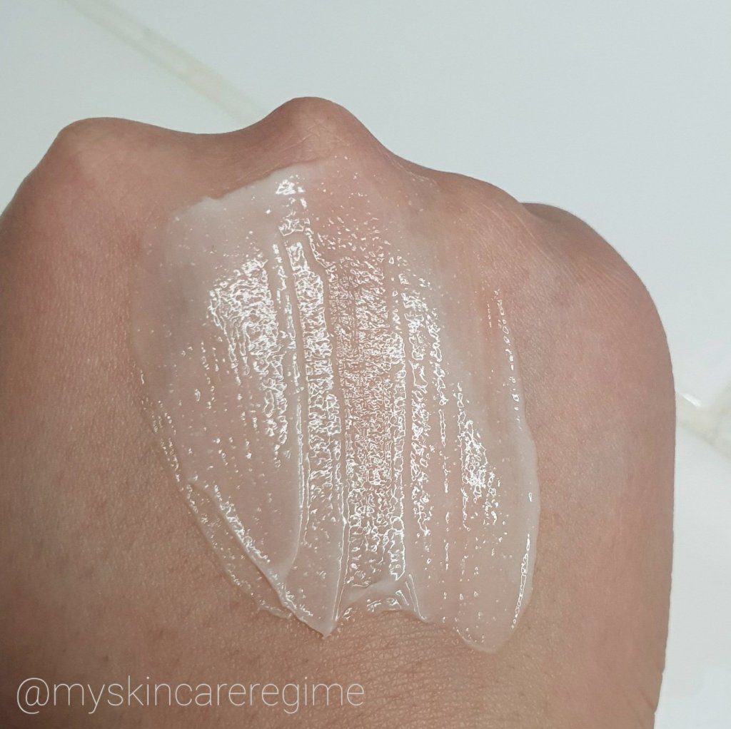As you can see, this has a yellow-ish tint to it. You can see it looks lightweight and near-watery. when spreading, I do get a texture to it i.e. I do feel little small granules. NOW I must say that these little granules are not rough, they don’t feel like walnut shell and they don’t feel like a harsh scrub. I.e. there is more gel in this than there are beads. If you would like to use this polisher because you like gentle scrubs, then by all means, go for it.