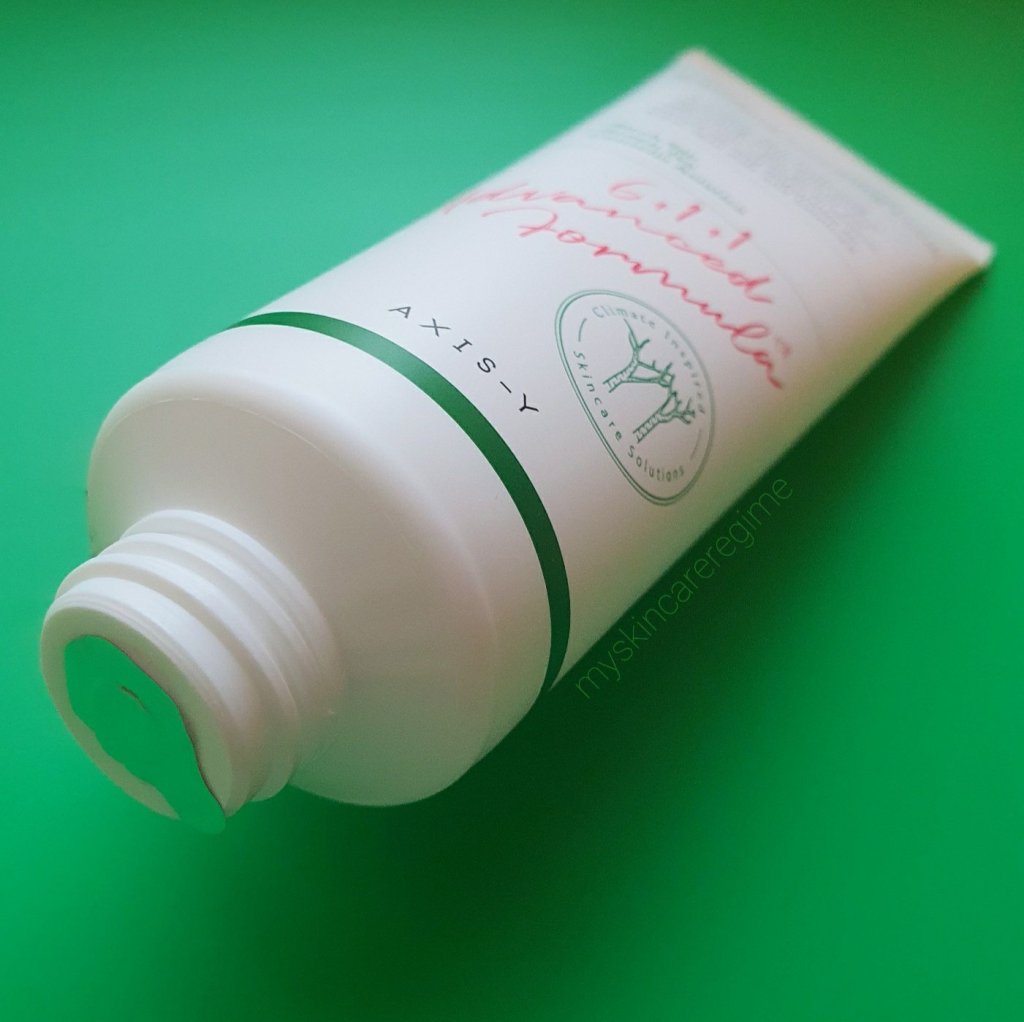 Directions: ”Squeeze a small amount into hands. Gently massage onto damp face. Rinse thoroughly with lukewarm water. Avoid eye area” – From the AXIS-Y website.
