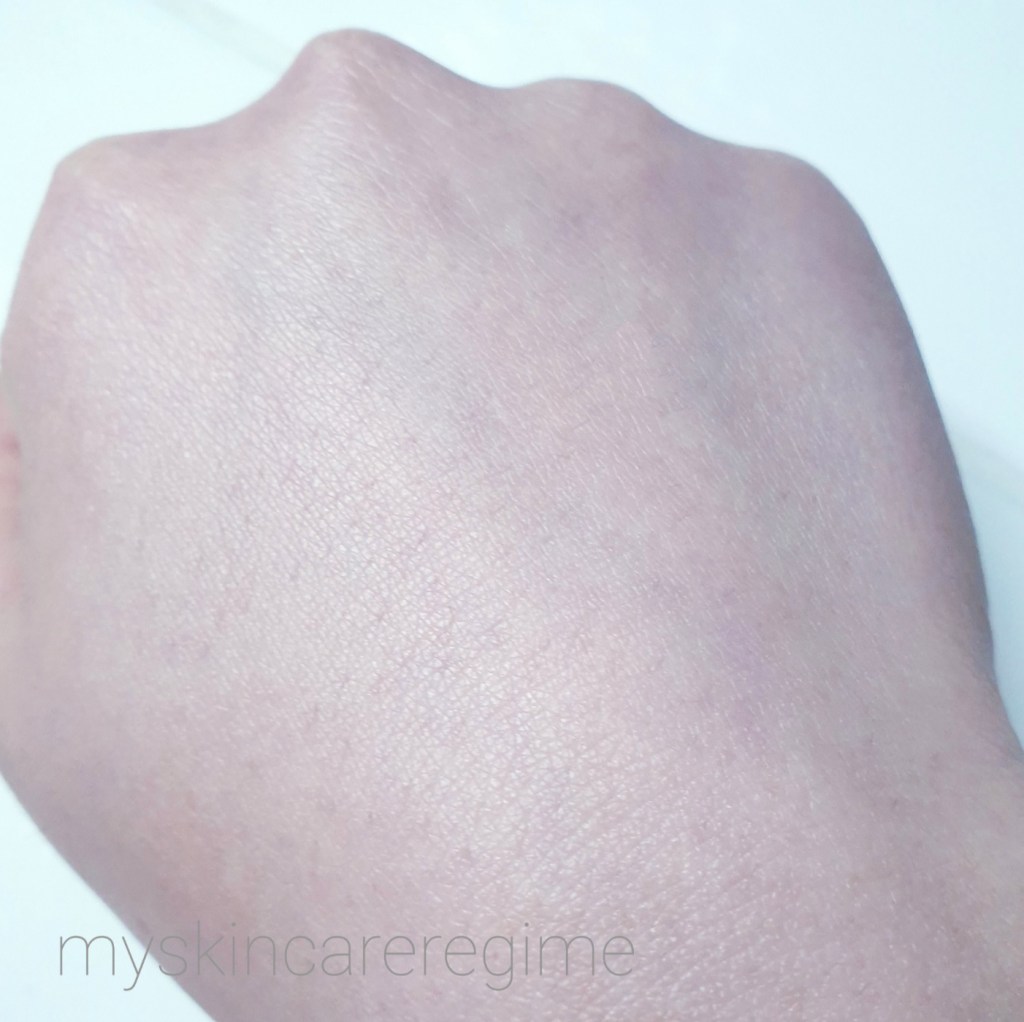 You can see it’s a matte finish which looks like the product has disappeared. I will say the citrus-y fragrance is quite potent if you sniff your skin.