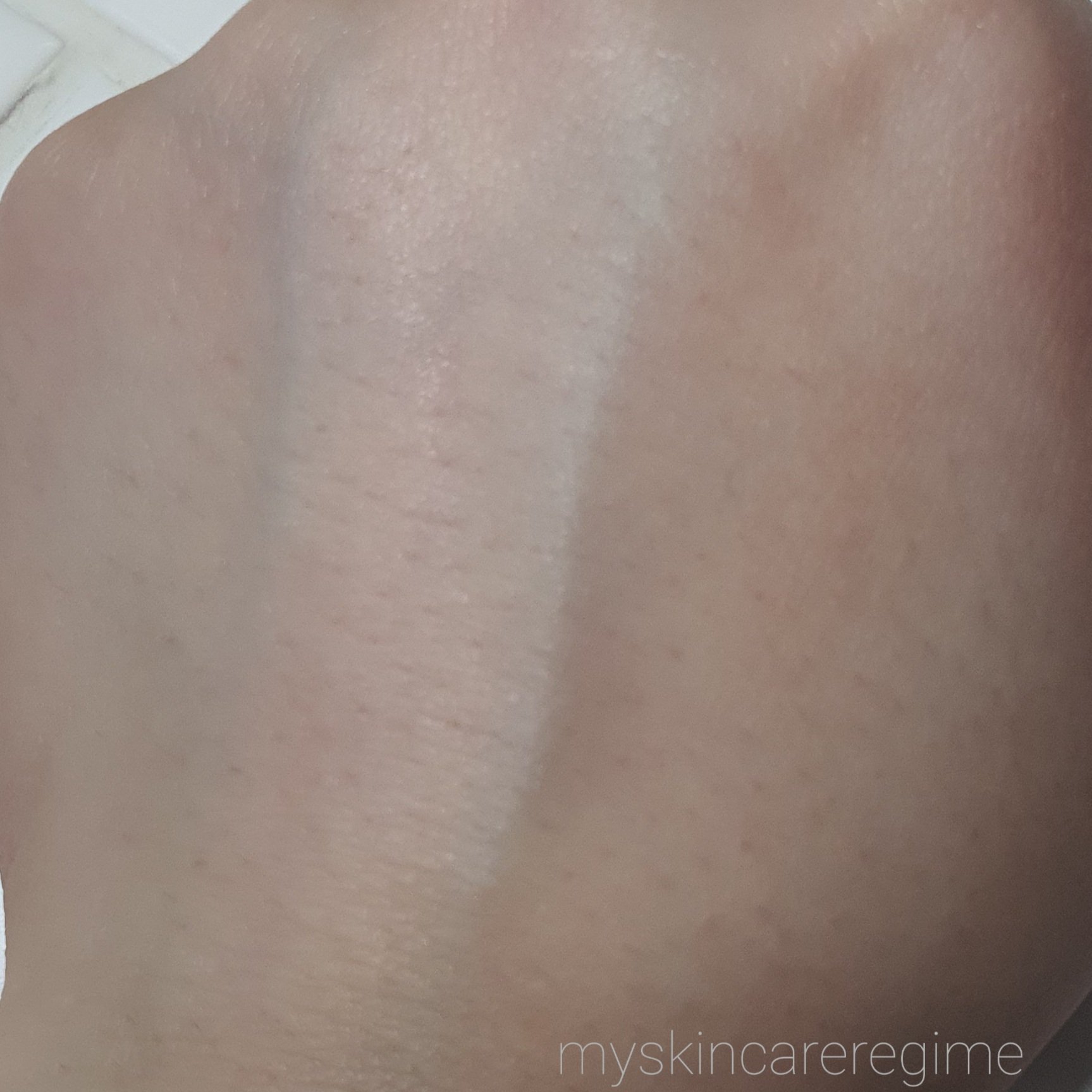 Also once this dries down, it doesn’t feel sticky or tacky and yet is still present on the skin.