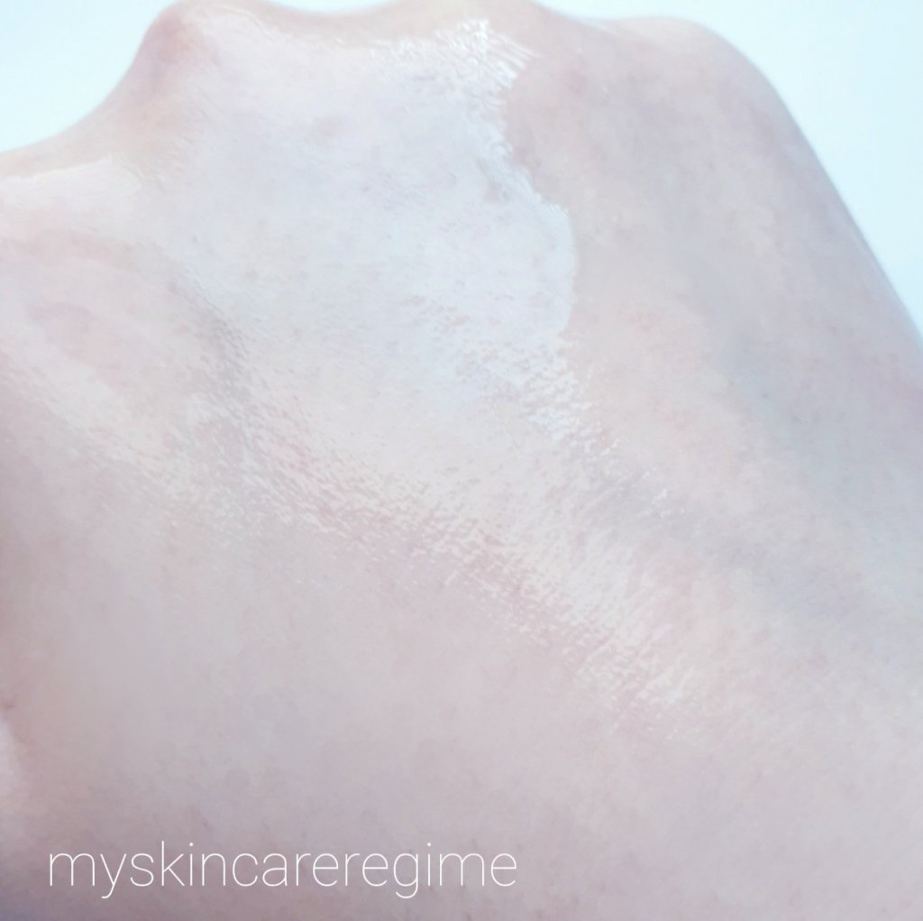 Texture: This is a watery and lightweight product. It absorbs fast, slides down the skin once applied, and is easy to tap/pat in. It’s also so light that it totally soaks up + saturates a cotton pad. A very easy to use product that can be used in both hot and warm weather without making the skin fee like it’s suffocating.