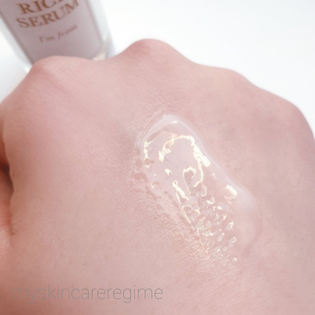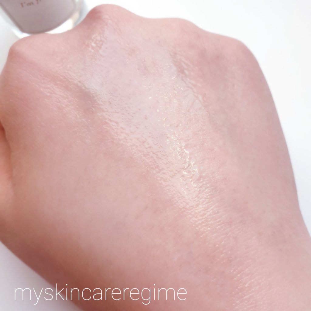 Texture: This is described as a product that immediately absorbs into the skin and provides a ”fresh” finish. I would agree! It definitely has some viscosity to it, this is more like a gel than a watery serum. So that’s why I wondered sometimes whether to use this as a cream or not (it’s that moisturising). That’s why I think those living in hot and humid weathers could use this like a moisturiser.