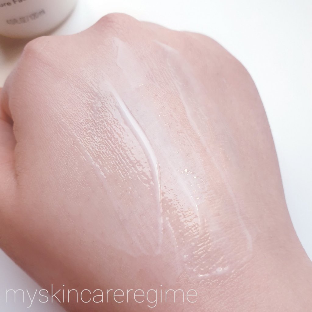 Texture: This is not a sticky or tacky cream. It layers fine under makeup and SPF. I don’t find it too thick as this is a moisturising milk and not a cream (Higher water:oil ratio). It’s not viscous and will run down the hand if I tilt it. It feels soft, smooth and silky along the skin and doesn’t ball up. It’s layerable as well. It doesn’t make my skin fee like it can’t breathe.