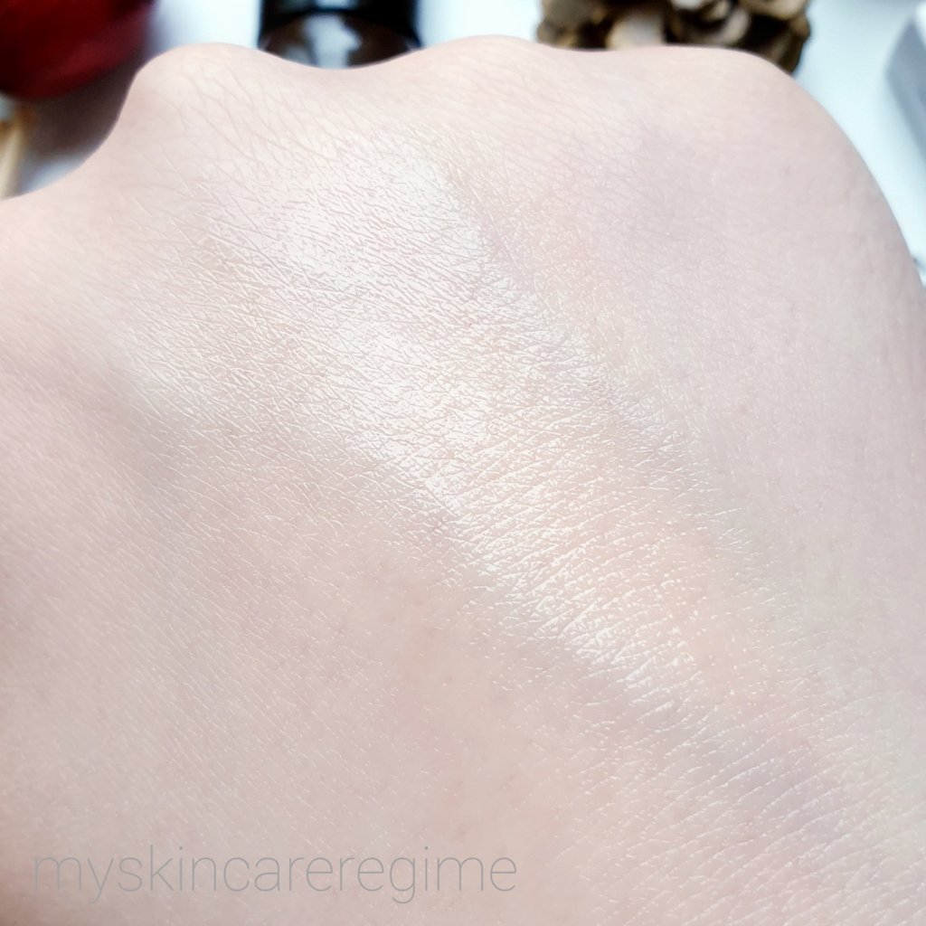 Texture: As you can see from the ingredients, this contains quite a few silicones! This keep the formula gel-like + makes the finish soft and smooth (filling in fine-lines in the process). Upon applying and rubbing in, this does provide a slight cooling and refreshing feeling to the skin. I didn’t have any issues with balling up which was nice (I always get worried about that with silicone formulas).