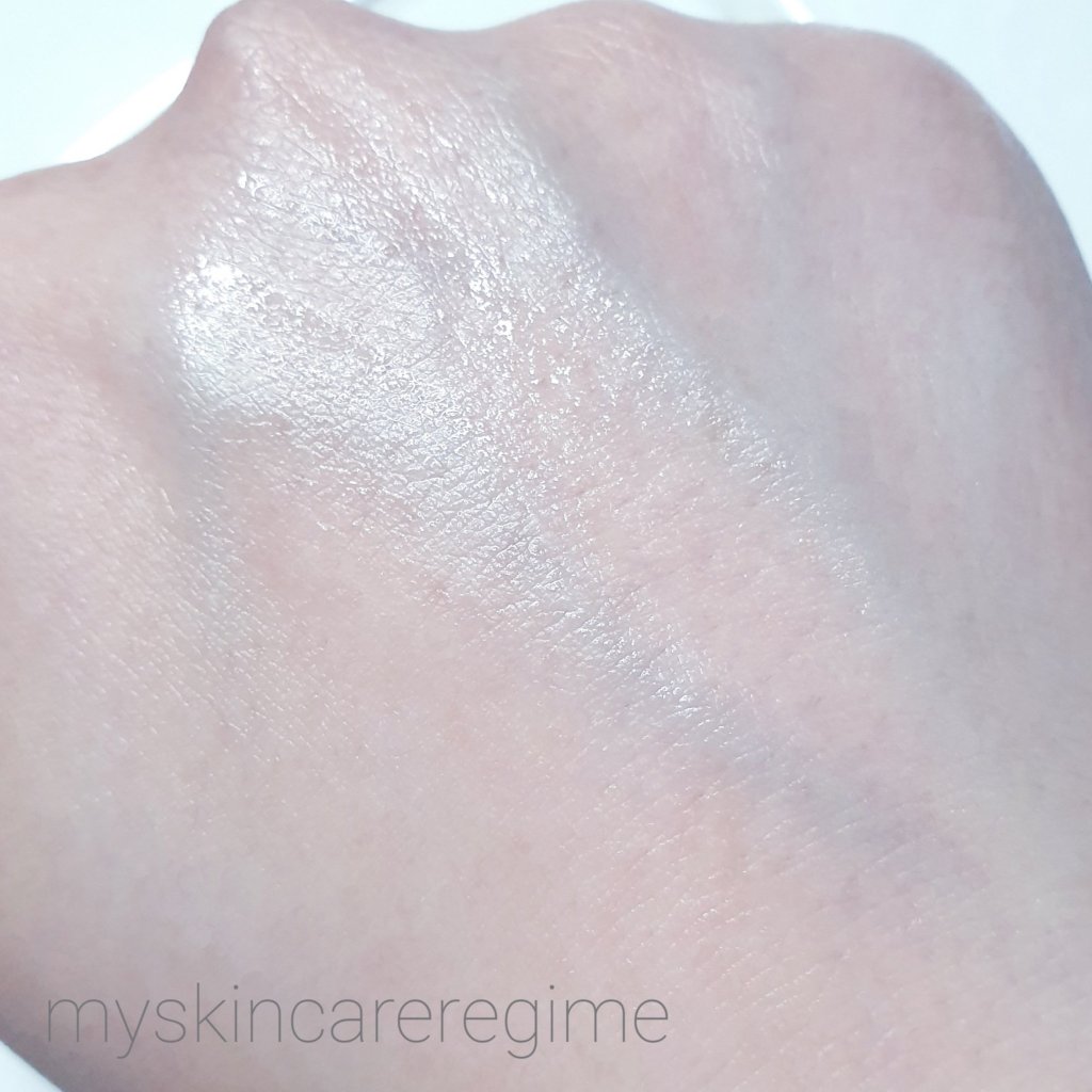 Texture: Very watery and lightweight! This has no oily or sticky finish. The skin can breathe, and this absorbs quickly! It does provide some hydration to the skin (especially if you add 2 layers). This doesn’t ball up either. It simply runs down the hand.