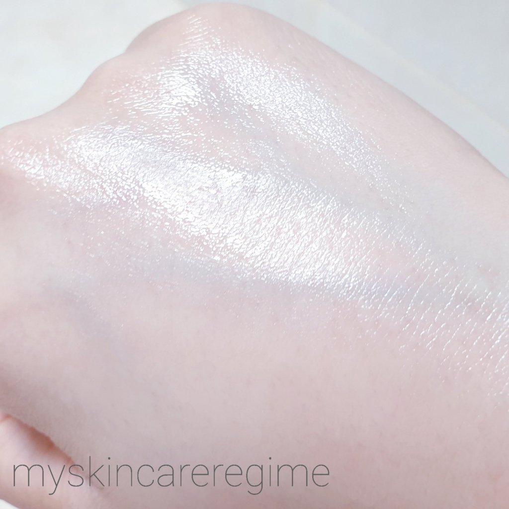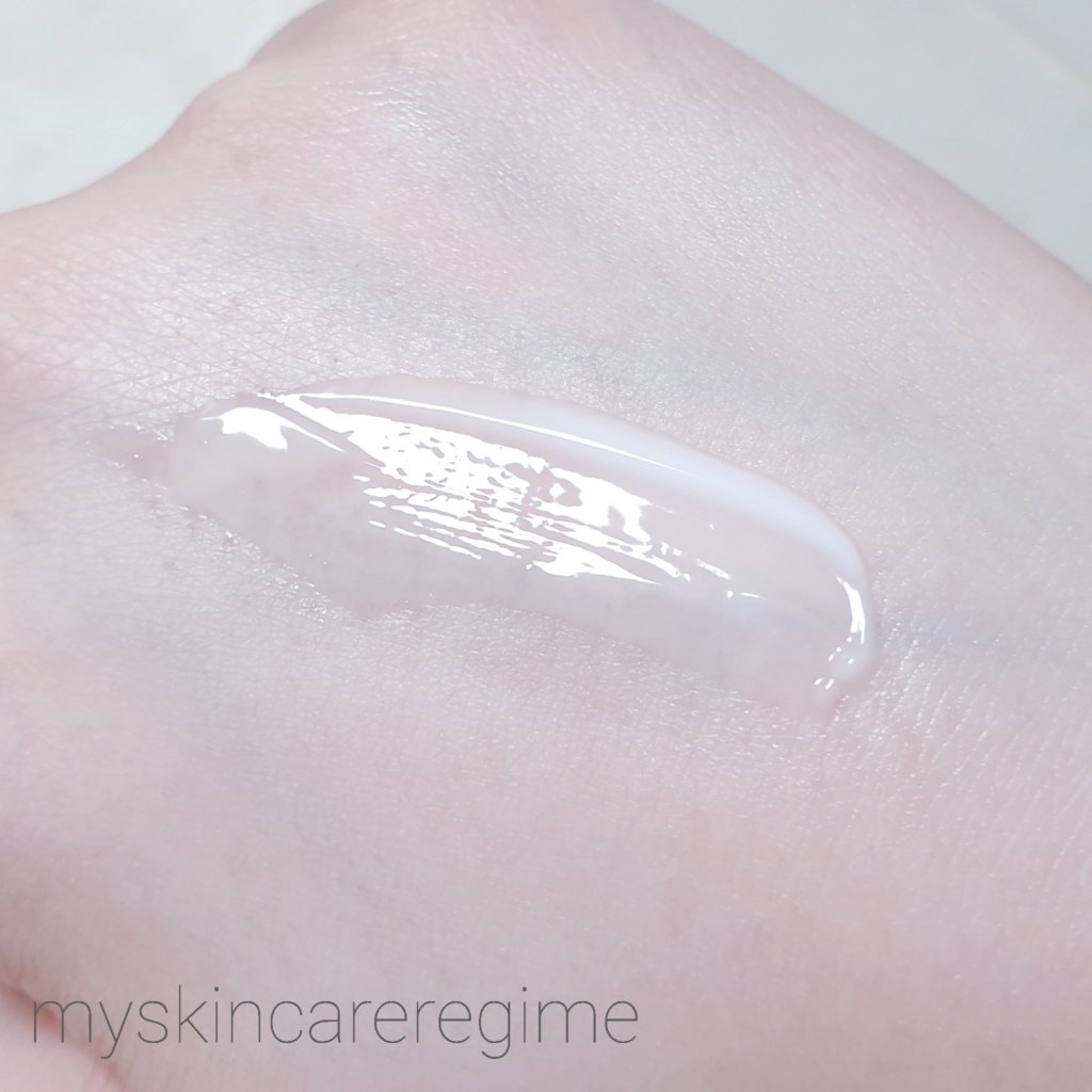 It looks like a watery, lightweight texture when spreading out! It begins as an opaque cream to a translucent and then transparent gel-like consistency.