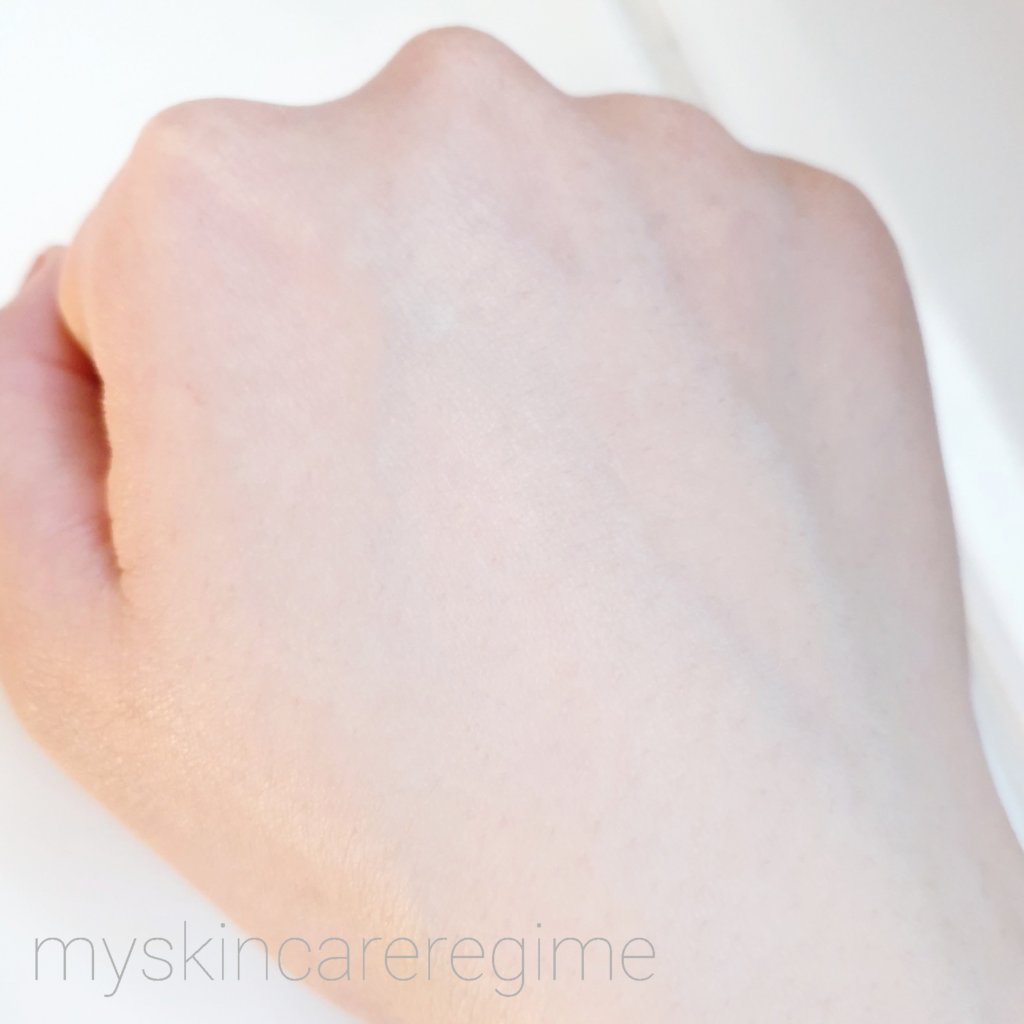 If you see below, this forms a sort of white cast once it’s done spreading, and I need to ‘tap’ the product in order to make the white go away. So that does remind me that this product is a mask (i.e. reminds me of clay). This however does not sting and does moisturise. It’s not as hydrating as I thought it would be but it definitely doesn’t dry out the skin.