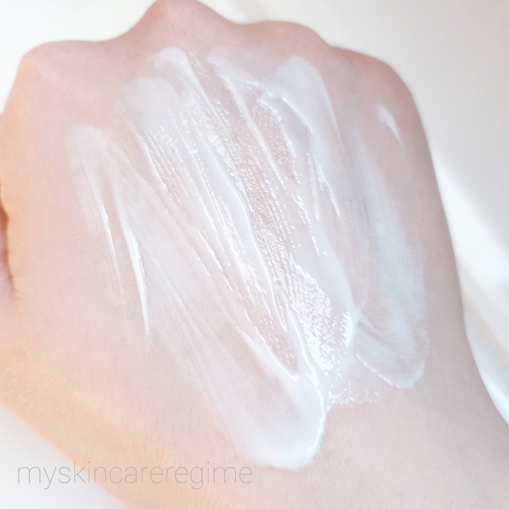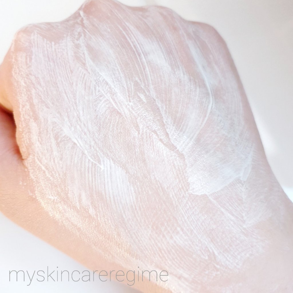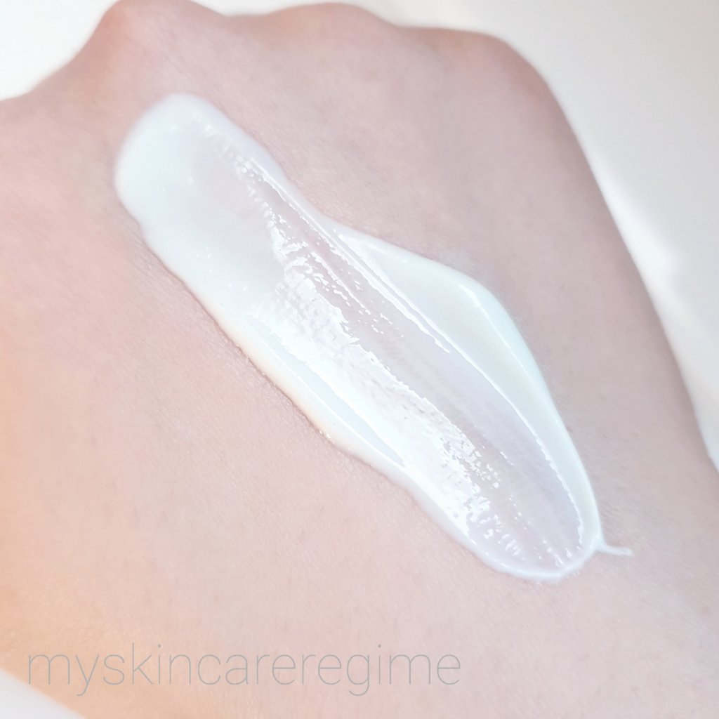 Texture: This has a creamy texture. It feels like a cream which does have a slight watery texture to it when initially applying. You feel that cooling sensation most definitely. It feels very soothing, almost like applying an aloe gel to the skin. But rubbing this in more and more, it begins to feel more uncomfortable, it forms more and more of an unbreathable barrier (great to prevent TEWL) which is why I’d say this would suit dry-er skins that need that protecting barrier.