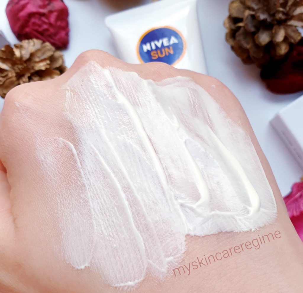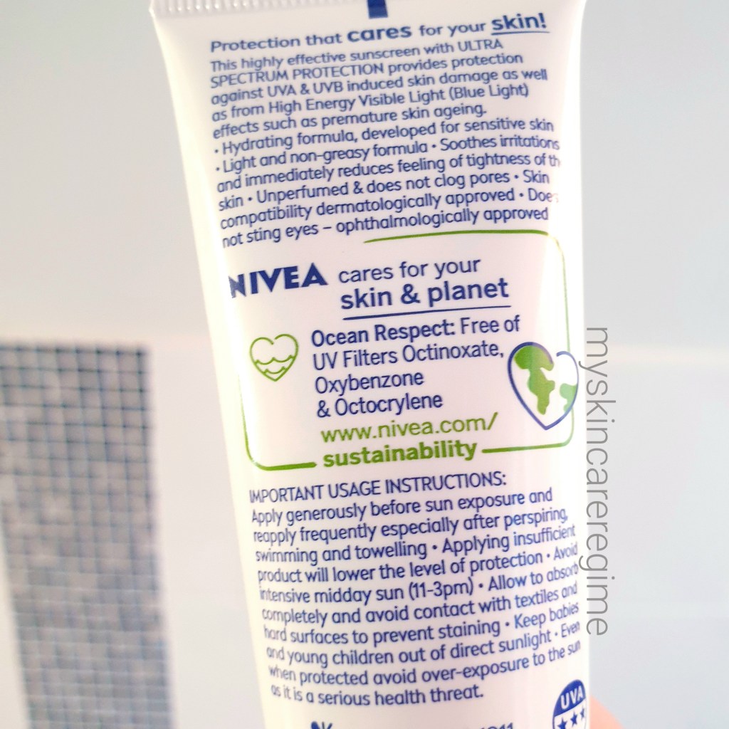 • Inclusion of alcohol may be irksome for some, but for me; I will use SPF containing alcohol as it keeps the formula lightweight and fast-absorbing, but of course if Nivea reformulated without including alcohol and it had the same texture, then that would still be preferable.