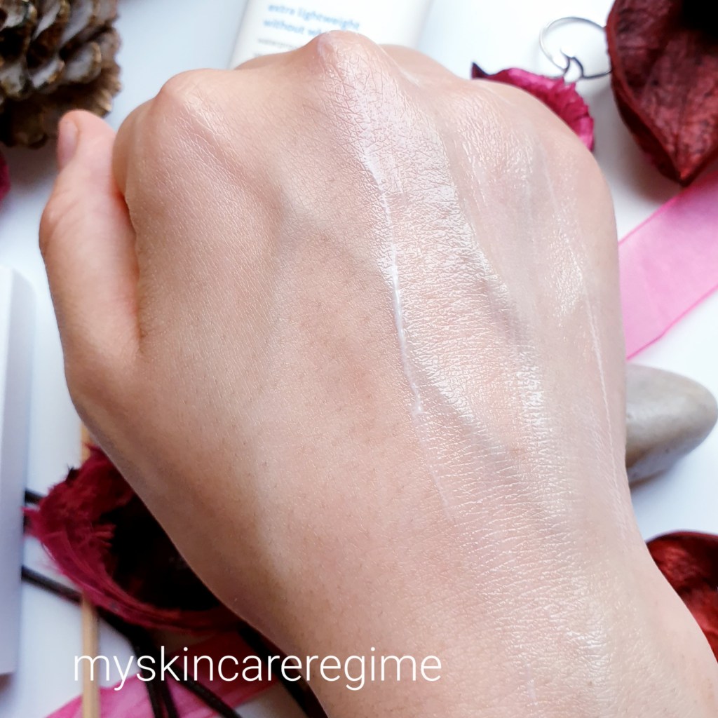 - Hopefully you can see how lightweight this product is. It doesn’t feel greasy, but hydrating. It doesn’t give my skin tone a white cast.
