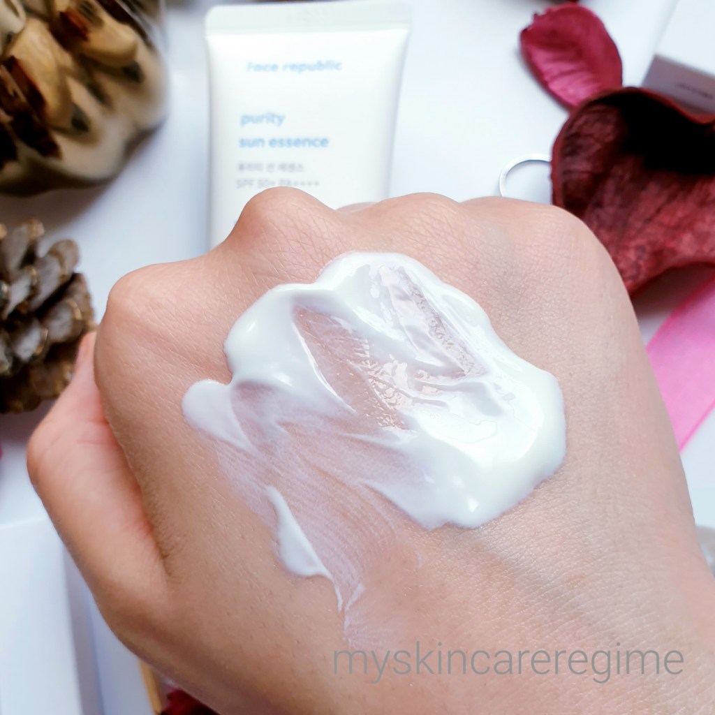 Texture: A lightweight, refreshing feeling occurs when this comes into contact with the skin. It’s cooling and hydrating. It almost feels like water (lightweight Gel Cream). Once the product has fully absorbed/dried down, there is a slight silicone layer that’s left behind, BUT it’s not as much as the Skin&Lab SPF (Review HERE).