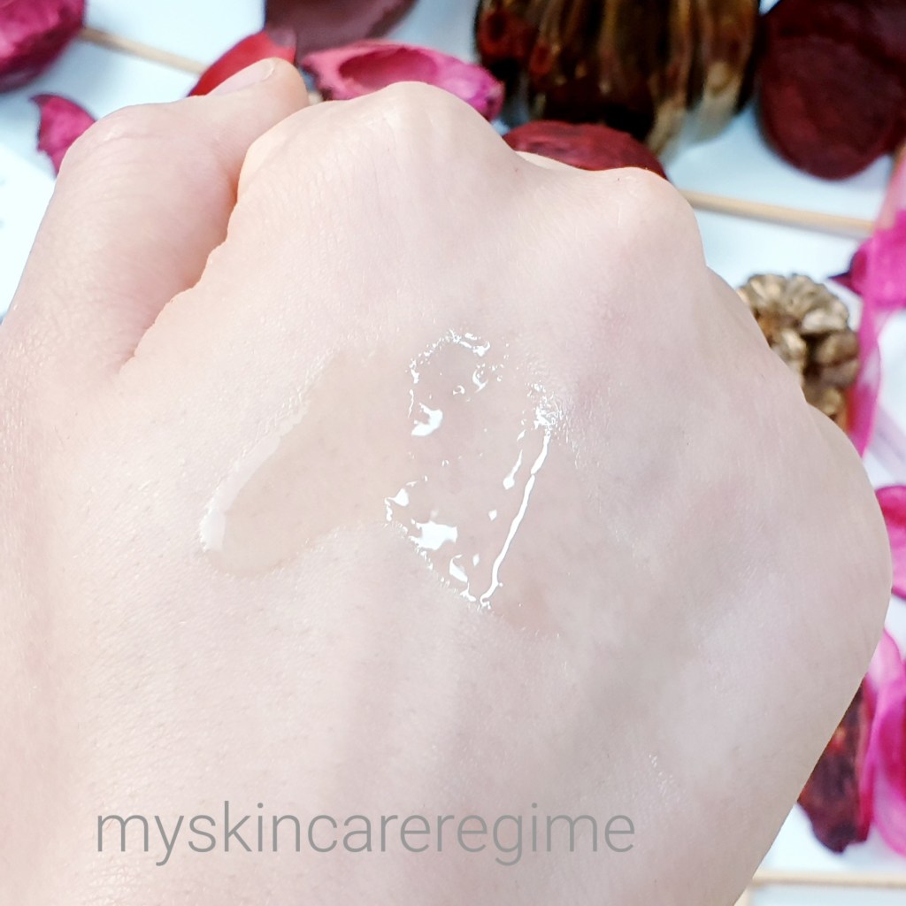 Texture: Lightweight, watery serum (almost like an essence). It’s very similar in texture and weight to The Ordinry’s Argireline Solution or the Wishtrend Hydra Ampoule. When applying this and letting it dry in- it gives a ”cooling” sensation to the skin while absorbing! It basically feels like a lighter-than-water essence that absorbs quickly into the skin. This definitely feels hydrating and it’s great that it doesn’t take ages to dry down.