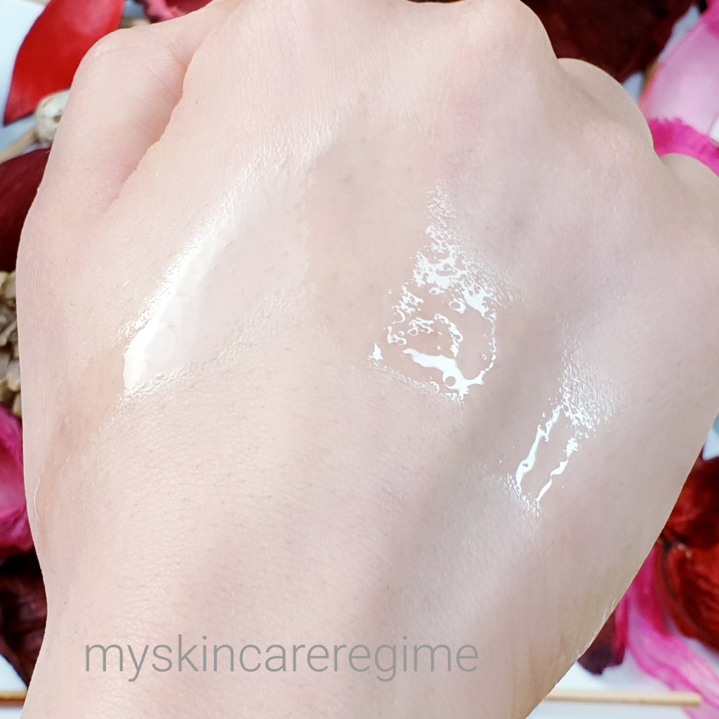 - As you can see, this is a lightweight, transparent liquid that will not hold its shape, it immediately wants to run down the hand and starts absorbing into the skin immediately.