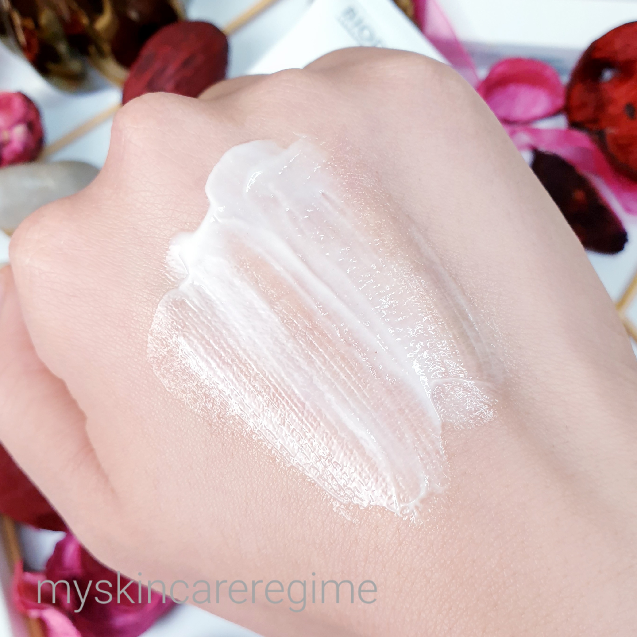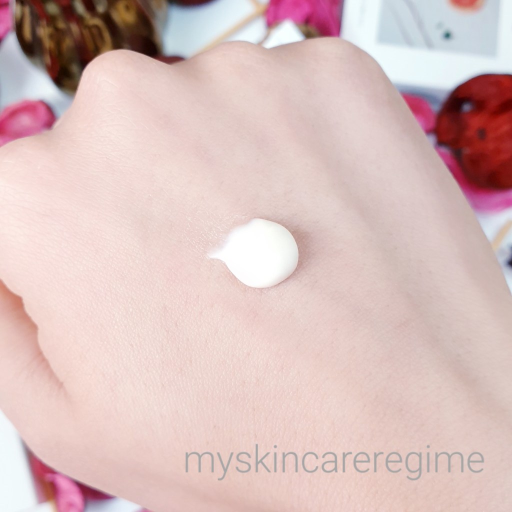 It’s creamy. It doesn’t ball up or feel silicone-y. It glides along the skin and feels moisturising. Dry skins would appreciate this texture the most, but my oily-combo skin can bear this during my sensitised skin routine when I’m not applying much else to the skin.