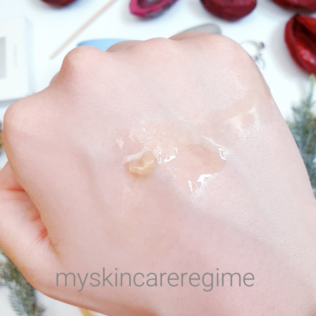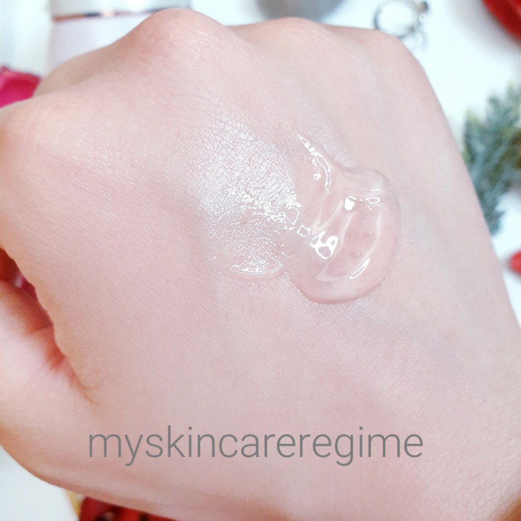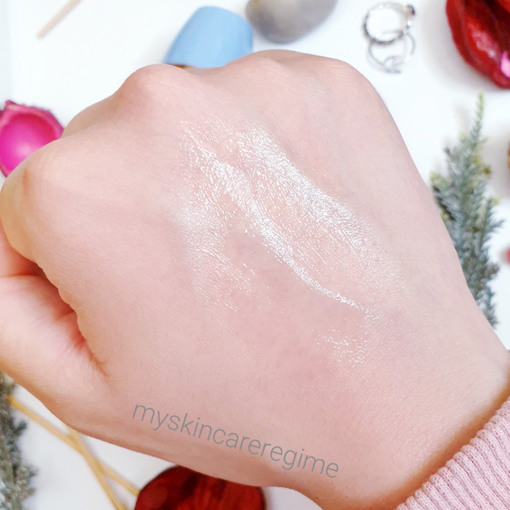 - As you can see, this has a transparent gel texture and is easy to spread along the skin.