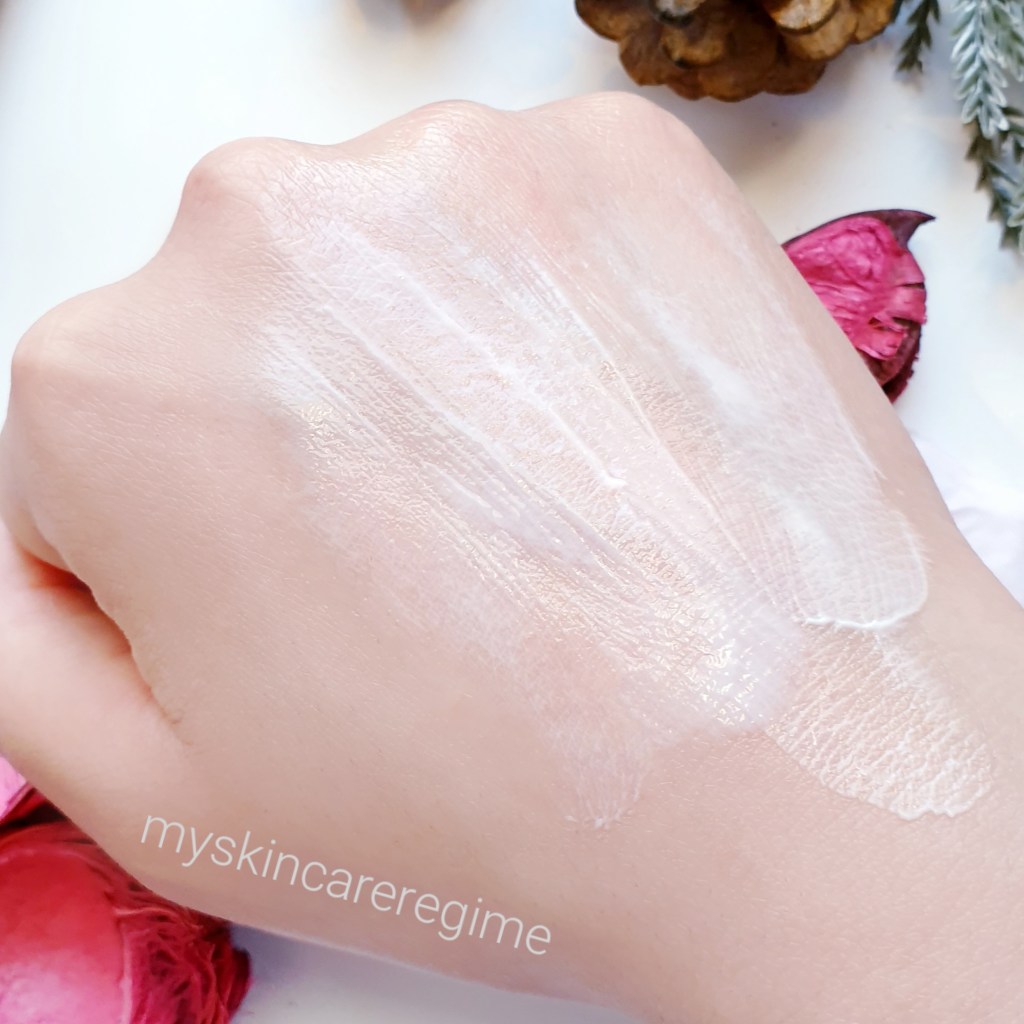 Texture: This doesn’t feel like silicone. It feels like a smooth cream that sort of melts into the skin while rubbing this in. It does make the skin look shiny.