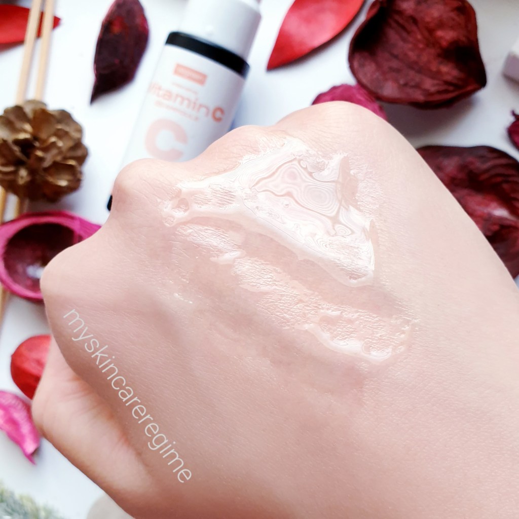 Fragrance?: This is Fragrance and Essential Oil-free. However this has a typical ”strong vitamin c” serum scent (i.e. almost metallic). It’s potent when applying, but becomes less potent after rubbing in.