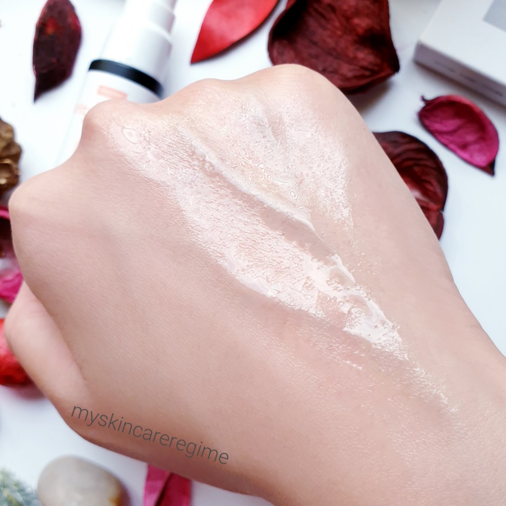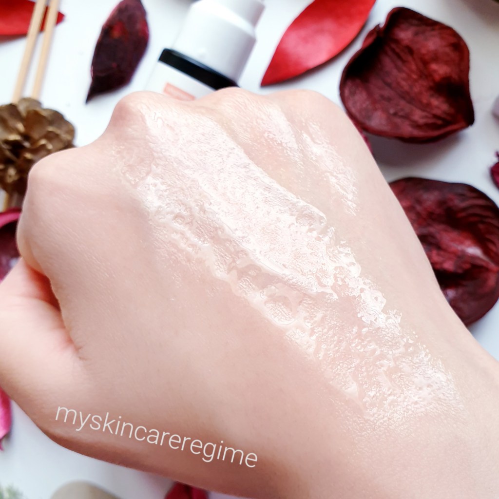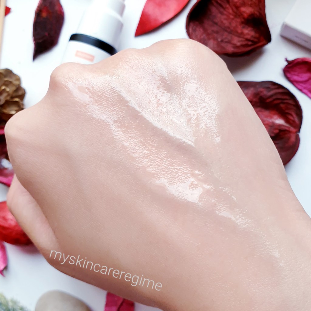 Texture: This has an oil-type texture that is not thick or heavy. A little goes a long way as this spreads very far. It doesn’t absorb immediately and if too much is added, this can sit on top of the skin. Furthermore, this feels warm when applying onto the skin, but it hasn’t stung my skin.