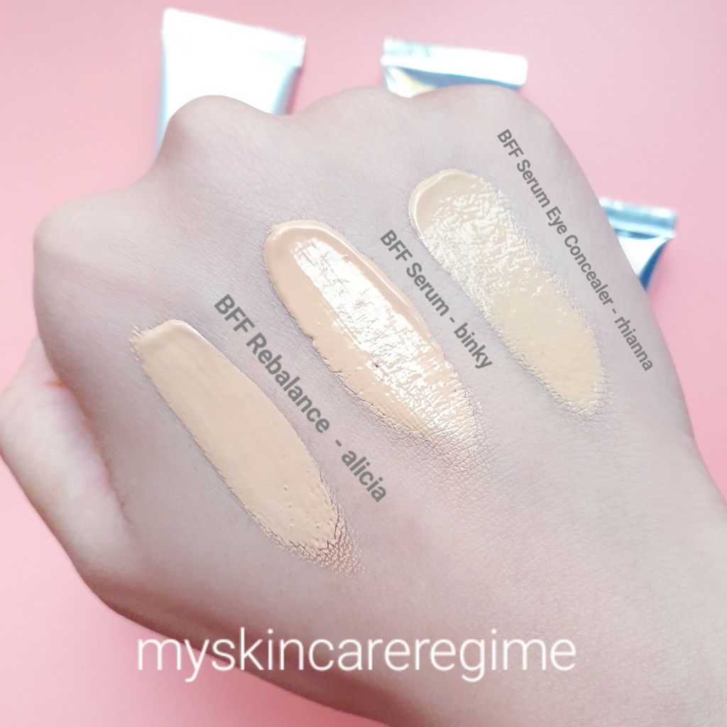 Firstly all of the Foundations / Liquid Concealer are part of the BFF line which are Skincare-Makeup Hybrids (not meant to dry-out or irritate your skin).