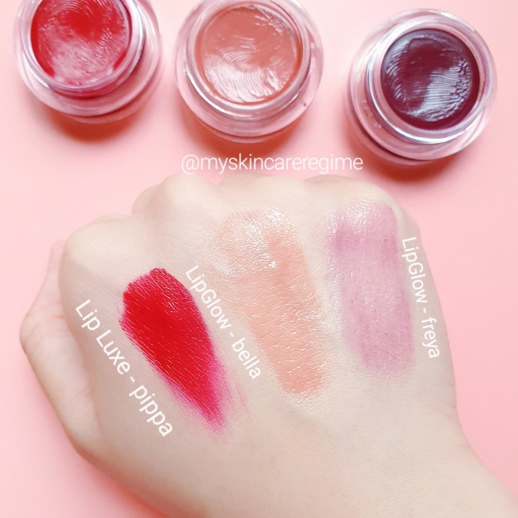 - As you can see from the swatches; The Lip Luxe is much more pigmented and lipstick-like. Whereas the Lip Glow’s are more sheer (like a tinted lip balm) so it looks like ”Your lips but better” which is also a natural look and finish.