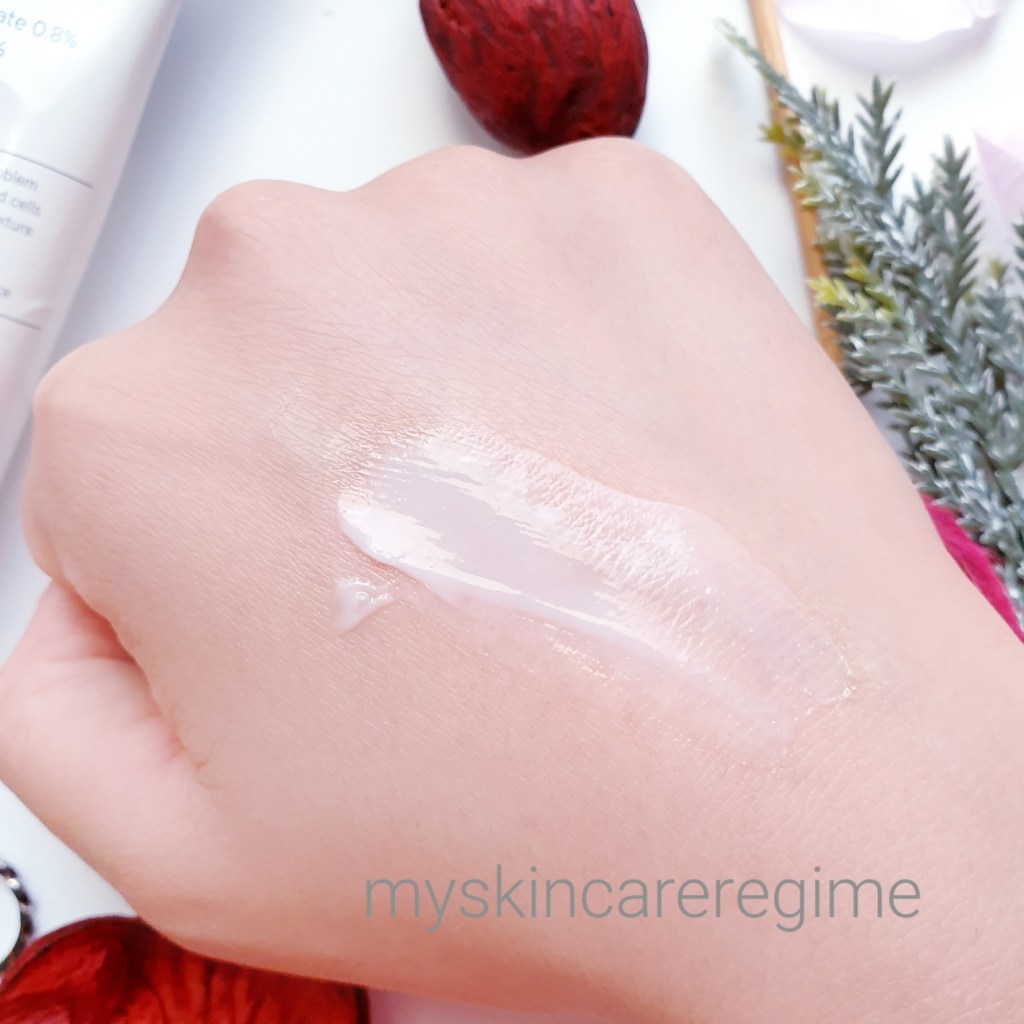 - As you can see, this has a lightweight, ”whipped” cream texture to it. It has a slightly silicone-base to it, and is easy to spread along the skin. It doesn’t look too shiny/greasy on the skin either, and doesn’t look sticky.