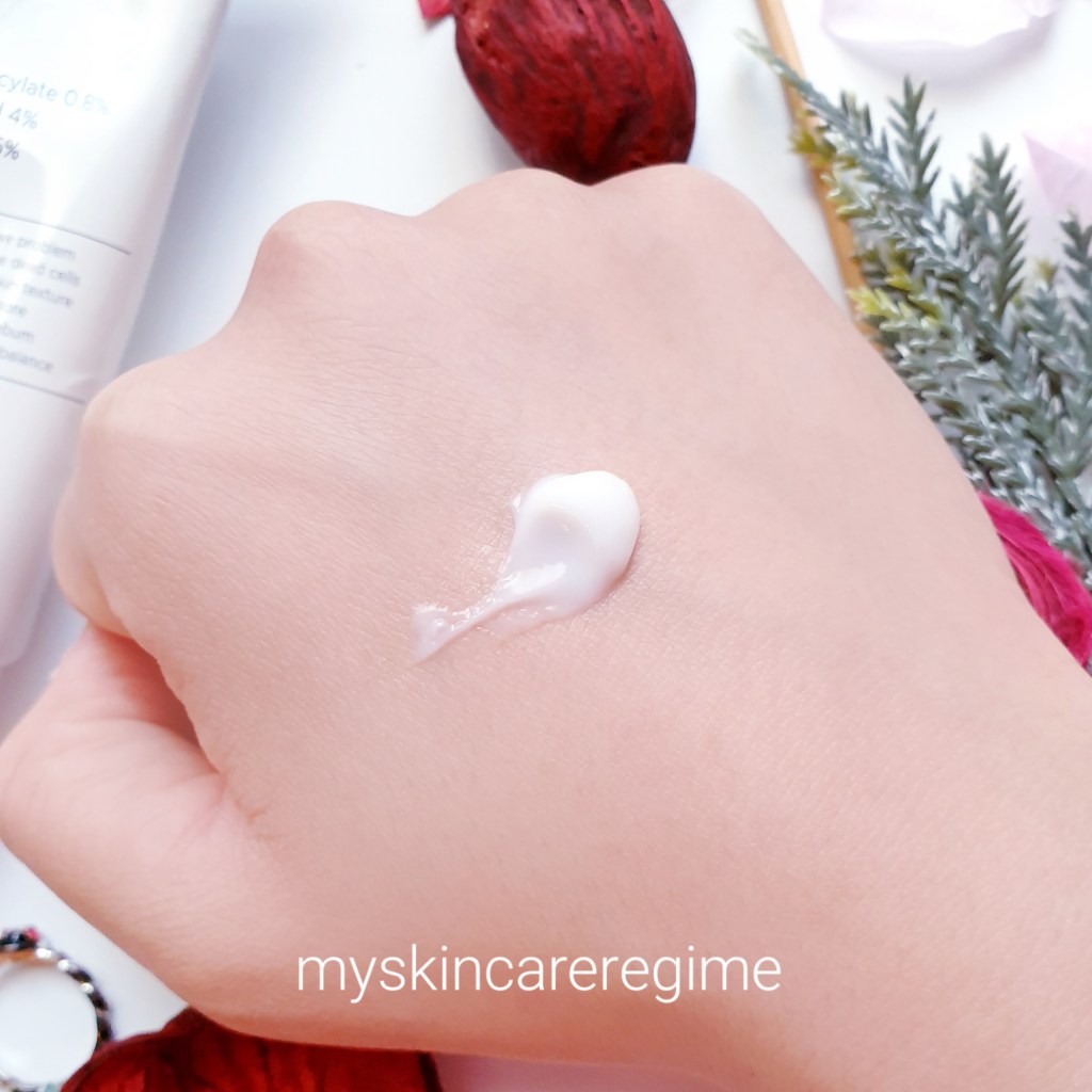 - As you can see, this is a lightweight, opaque cream. I hope you can see this has a combination of a lightweight, silicone-ish cream that is also hydrating.