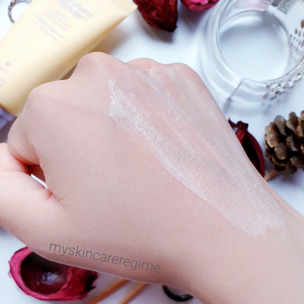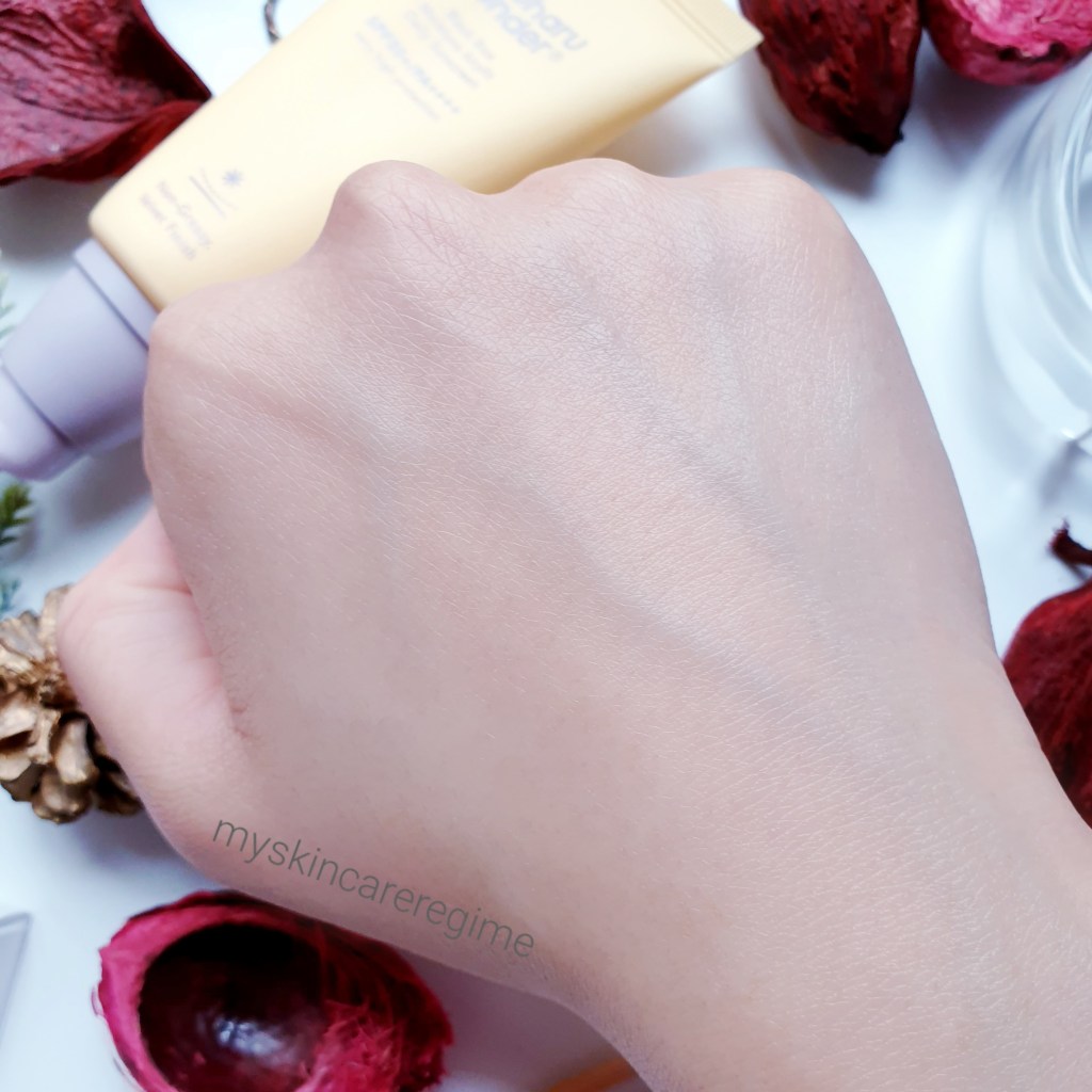 Greasy?: Initially, this feels slightly greasy and creamy when applying this on the skin, but as the more emollient ingredients absorb into the skin and that light silicone layer/barrier also forms on the skin, this doesn’t feel greasy (like the BOJ Sunscreen does).