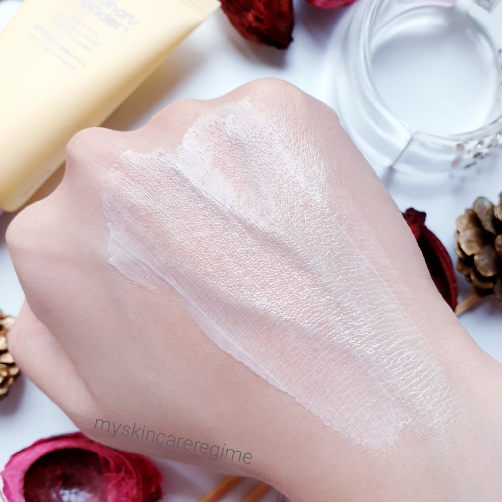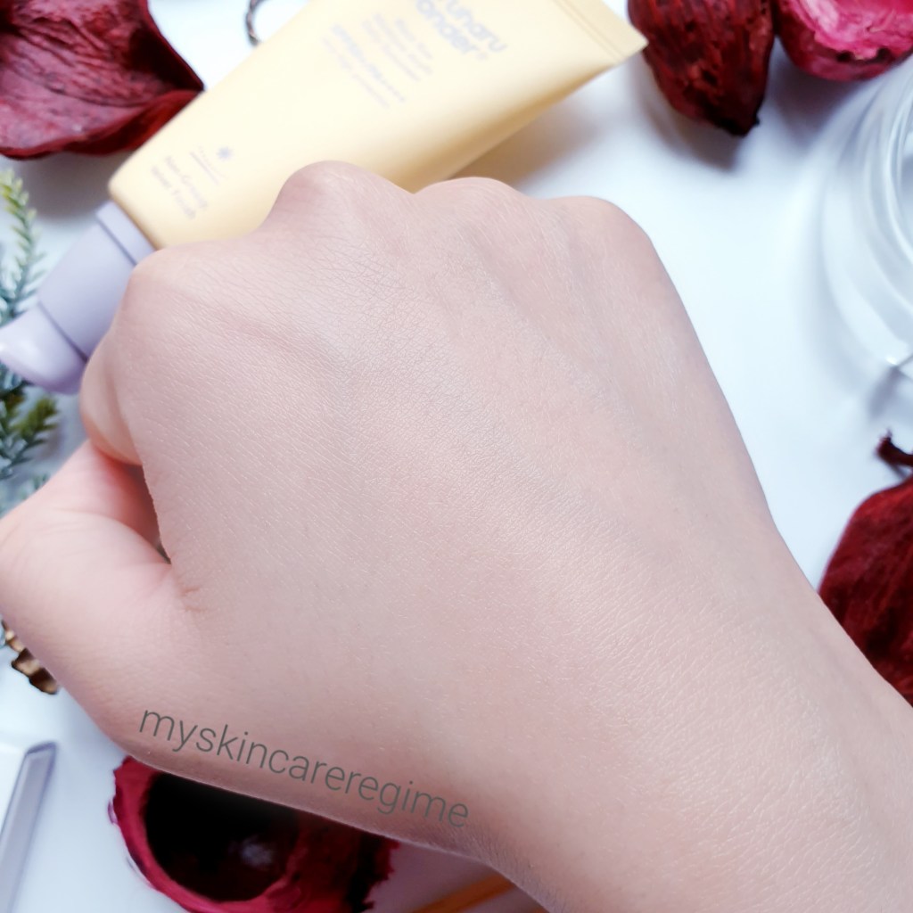 Texture: This is has a lightweight, creamy formula that immediately feels moisturising/hydrating on the skin. It is easy to spread and doesn’t feel sticky or tacky. The formula isn’t mattifying BUT it does NOT make me look too shiny or greasy (I have Oily-Combo Skin). As you spread this out, there is no white cast and the product sets in place with a velvety finish (but not overly silicone and doesn’t ball up). If I had to describe this Sunblock, I would call it ”Comfortable.”
