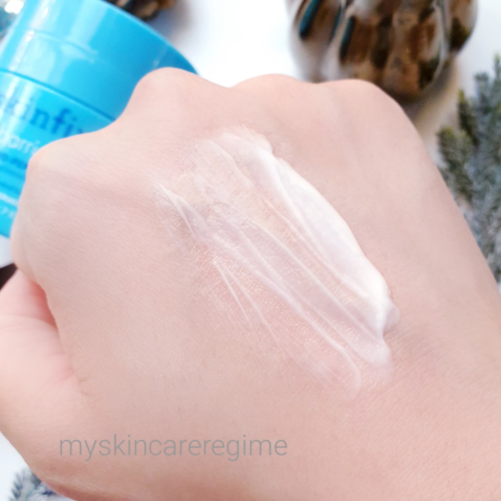 As you can see, this is a creamy moisturiser. It’s not water-based and doesn’t run down the hand. It does soften the skin but also does feel slightly heavy on my combination skin.