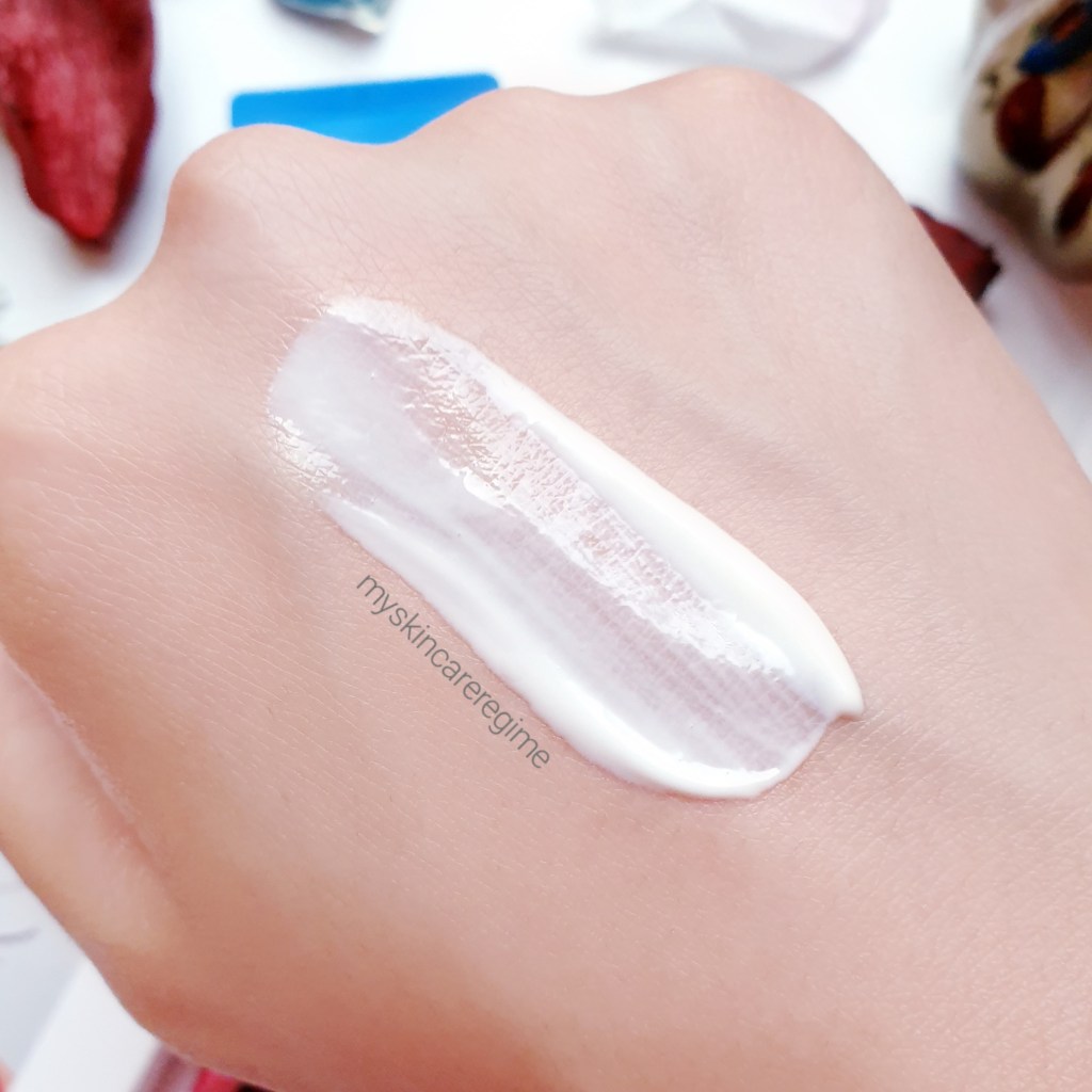 - As you can see, this is initially a cream. It smooths out and becomes less-opaque as it spreads along the skin. This also does not look sticky and isn’t too oily/shiny on the skin (not mattifying however).