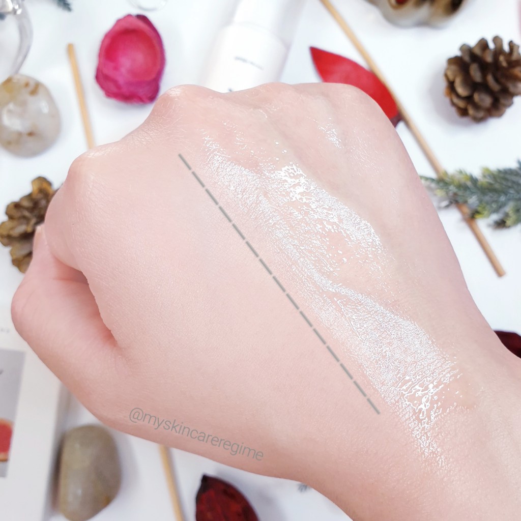 - This has a gel-like texture that smoothes out when massaging along the skin. You can see how invisible the look of this product is.