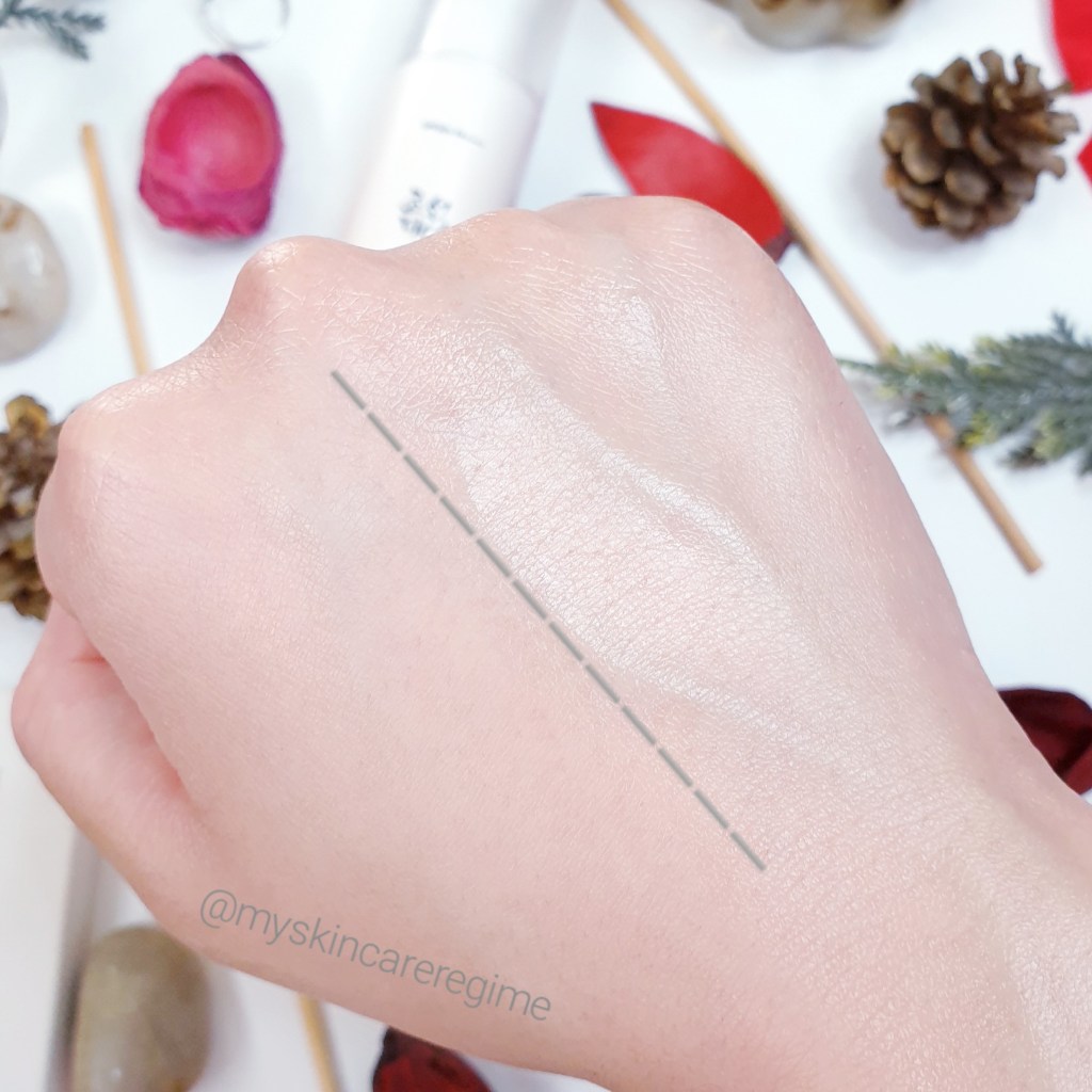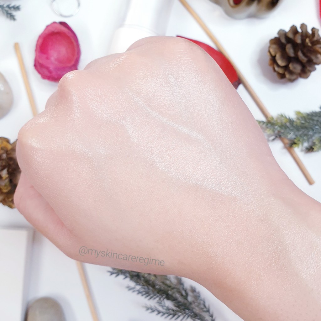 Hopefully you can see this shiny / dewy finish. It doesn’t go away or disappear once absorbed and remains quite shiny (for my oily-combination skin).