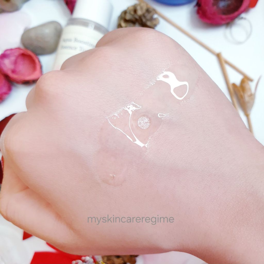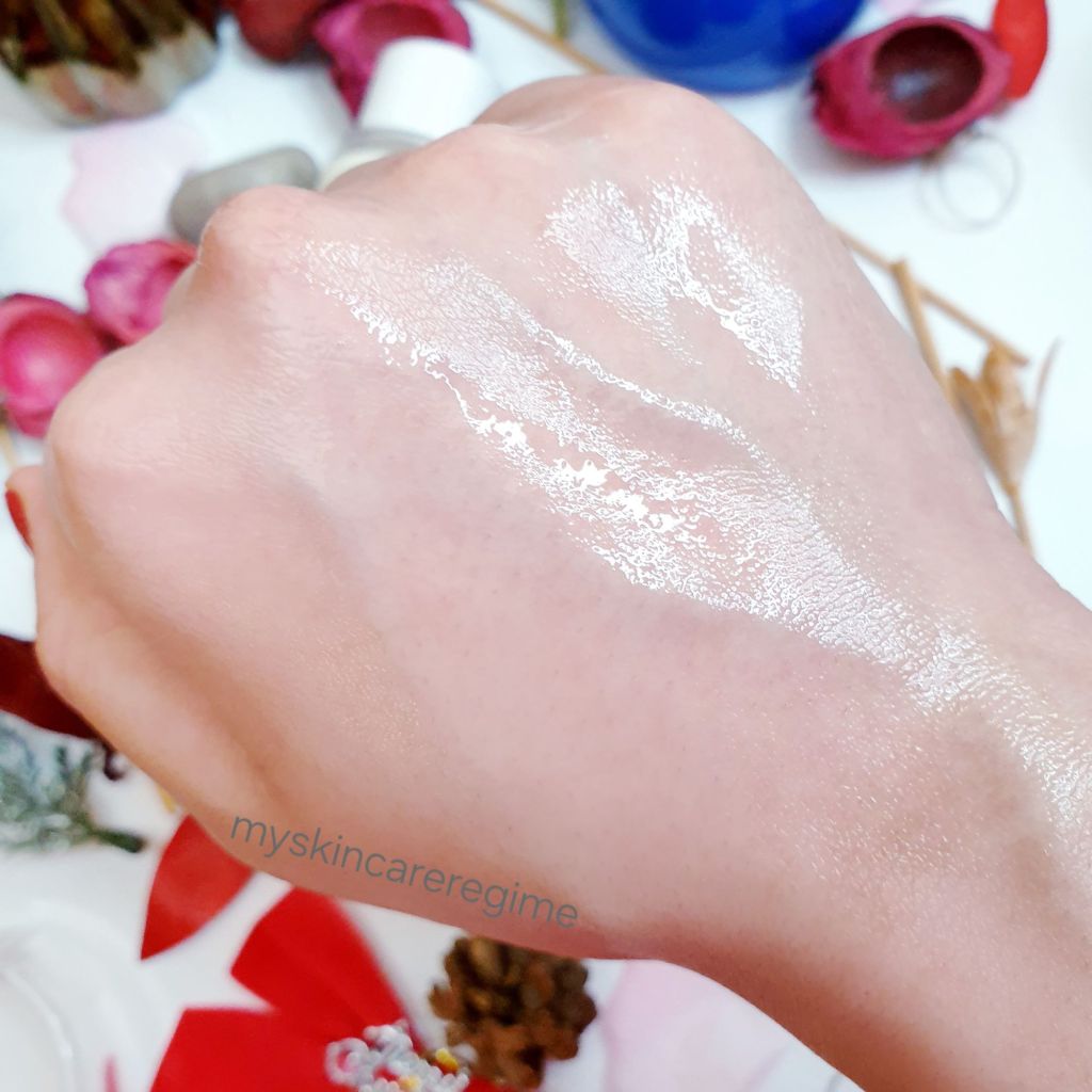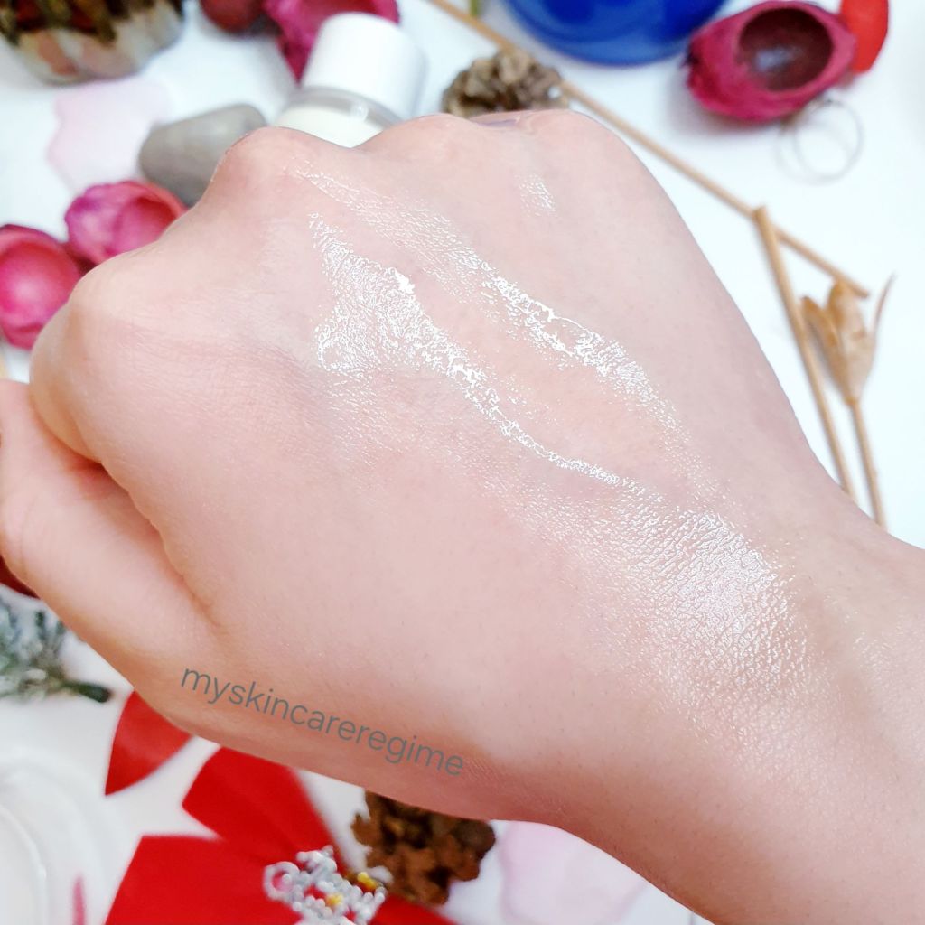 Texture: This slides down the hand (lightweight). It is hydrating but is still thicker than water. When it dries down, it does become remotely sticky (forms a slight layer on top of the skin, but not as much as the ampoule which is thicker). See swatch video below.