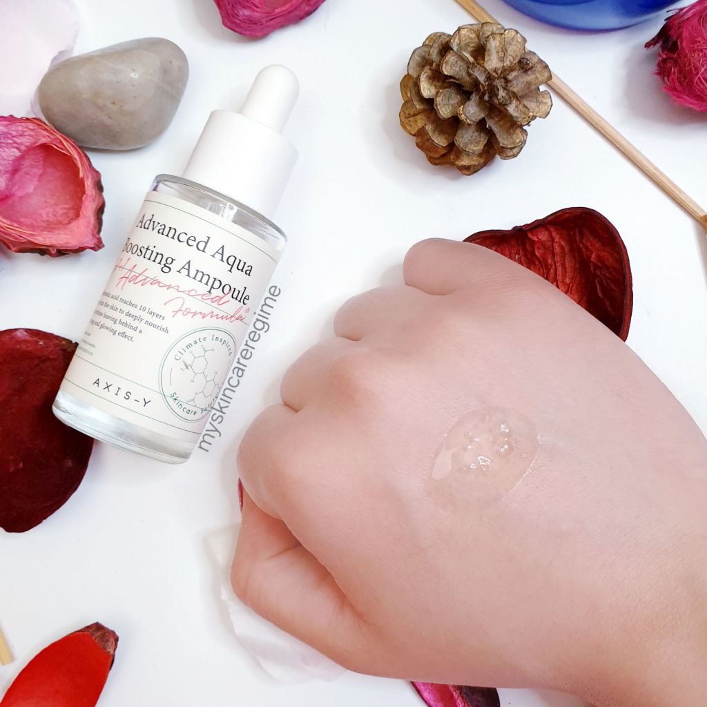 Hello all! – I have previously reviewed The K-beauty brand Axis-y’s Sunblock (Review HERE), Cleansing Foam (Review HERE) and Duo Cream (Review HERE). I liked those products, so I decided to give some more of their unscented products a go and try the Axis-y Aqua Boosting Essence Toner and the Advanced Aqua Boosting Ampoule! These are from the same line, where their main feature is that both contain 10 types (multiple forms) of Hyaluronic Acid. Therefore, this line focuses on hydration, reaching deeply into the skin and nourishing it from within, thereby plumping up the skin.