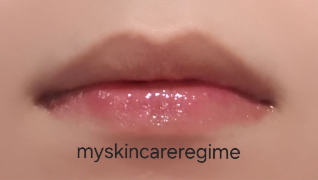 - You can see there is definitely some glitter on the lip. It is glossy. It feels smooth and moisturising.
