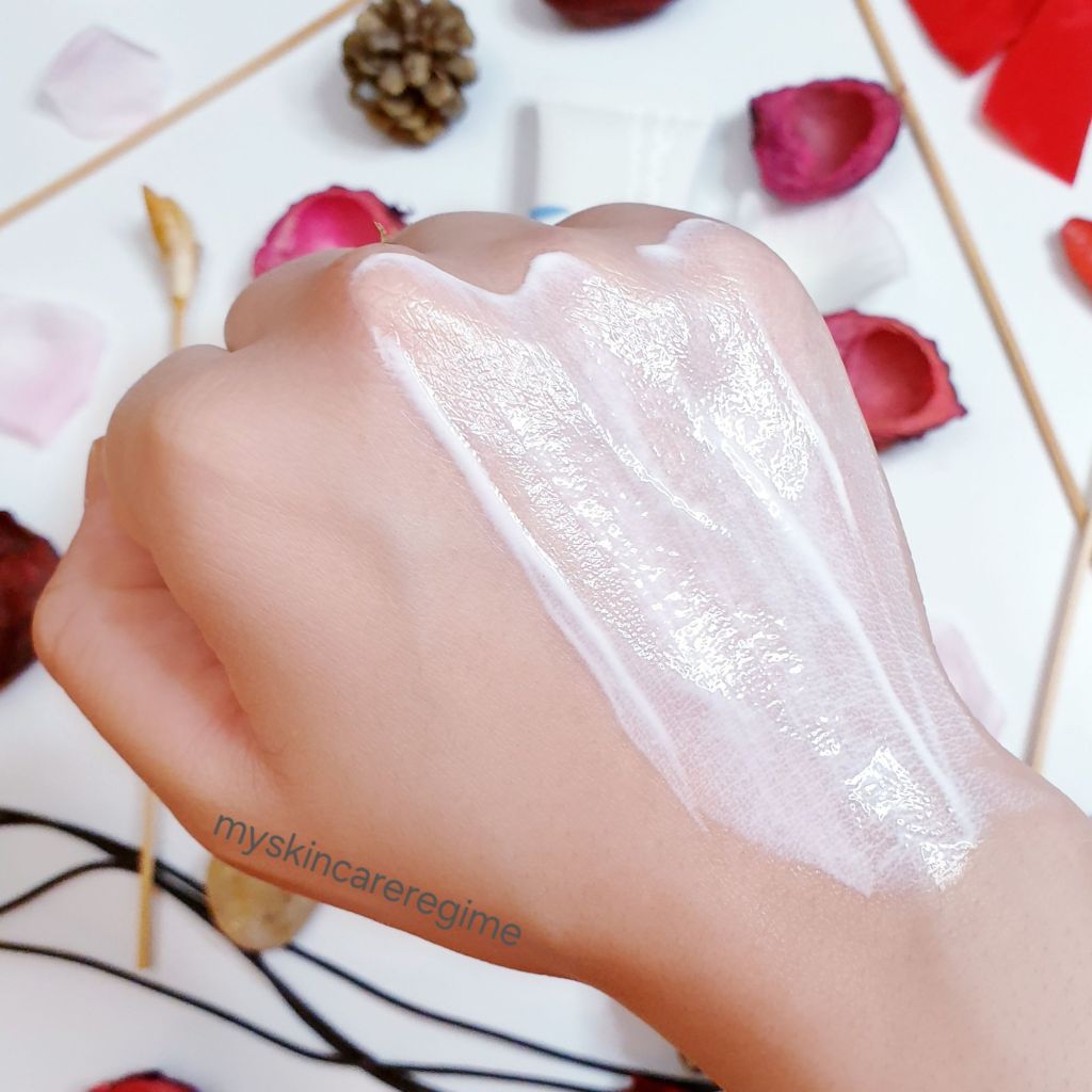- As you can see, this has a lightweight texture, is hydrating/moisturising-looking, and isn’t sticky or tacky. You can also see that there is no white cast.